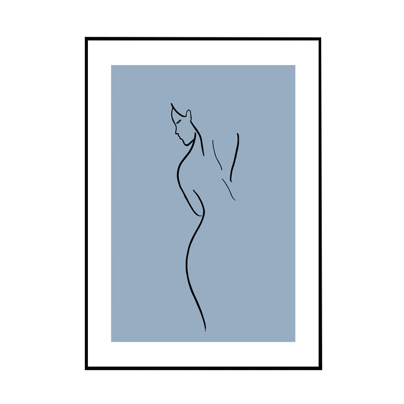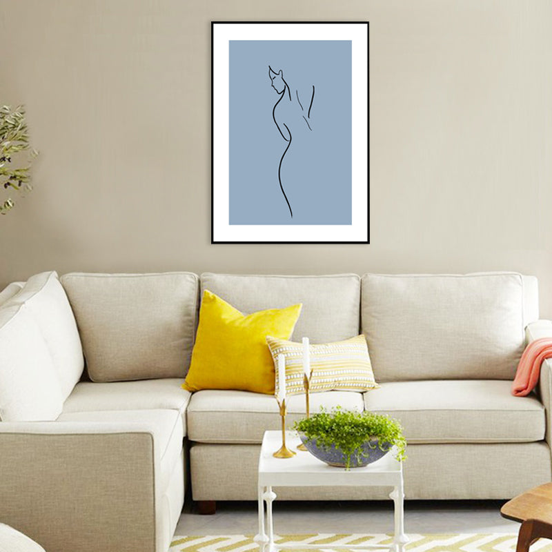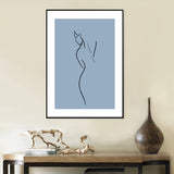Toile imprimée avec dos de femme Simple, dessin au trait bleu-noir, Art mural pour chambre à coucher