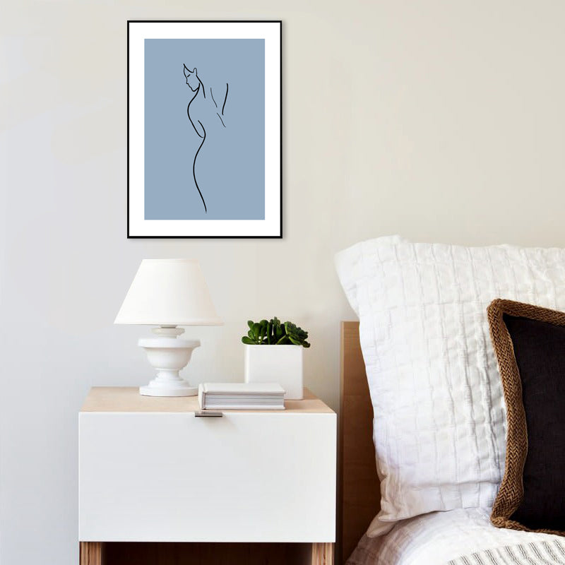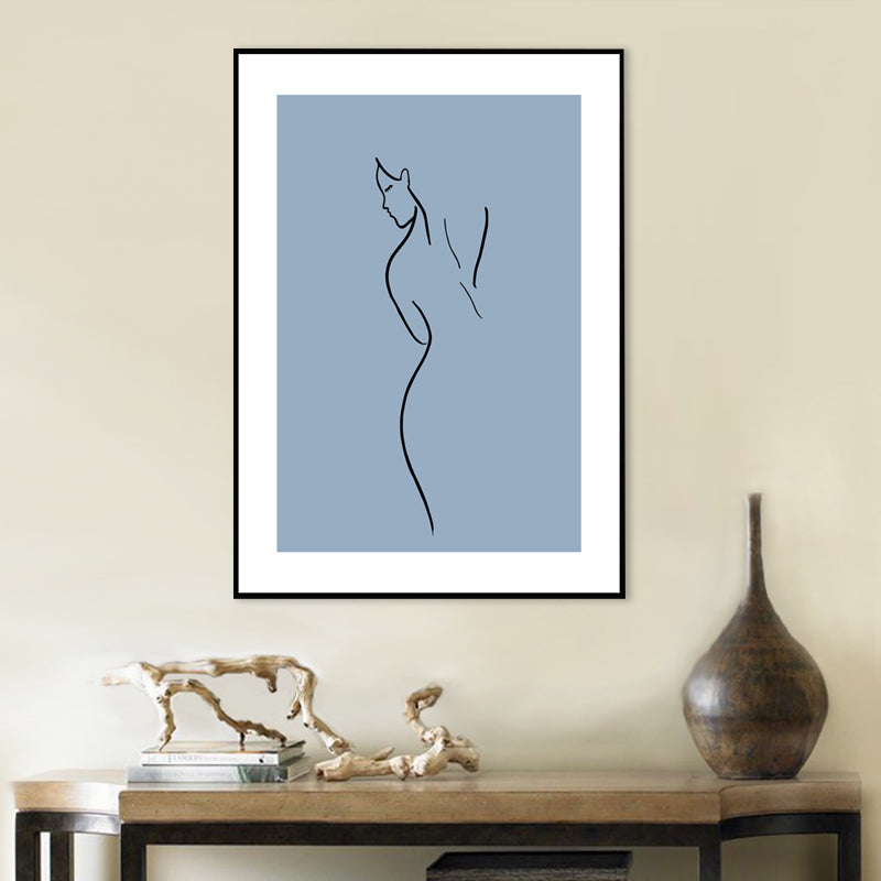 Simple Back of Woman Canvas Print Blue-Black Line Drawing Wall Art for Bedroom Clearhalo 'Art Gallery' 'Canvas Art' 'Contemporary Art Gallery' 'Contemporary Art' 'Minimalism' 'Minimalist Art Gallery' 'Scandinavian' Arts' 1707661