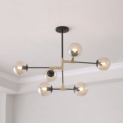 Lustre de ligne de Style Simple, suspension en métal à 6/8/10 têtes avec abat-jour boule en verre ambre/clair/fumé pour salle d'étude