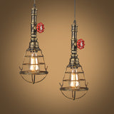 Luminaire suspendu en forme de cage en forme d'ampoule unique luminaire à suspension en métal industriel avec décoration de valve rouge