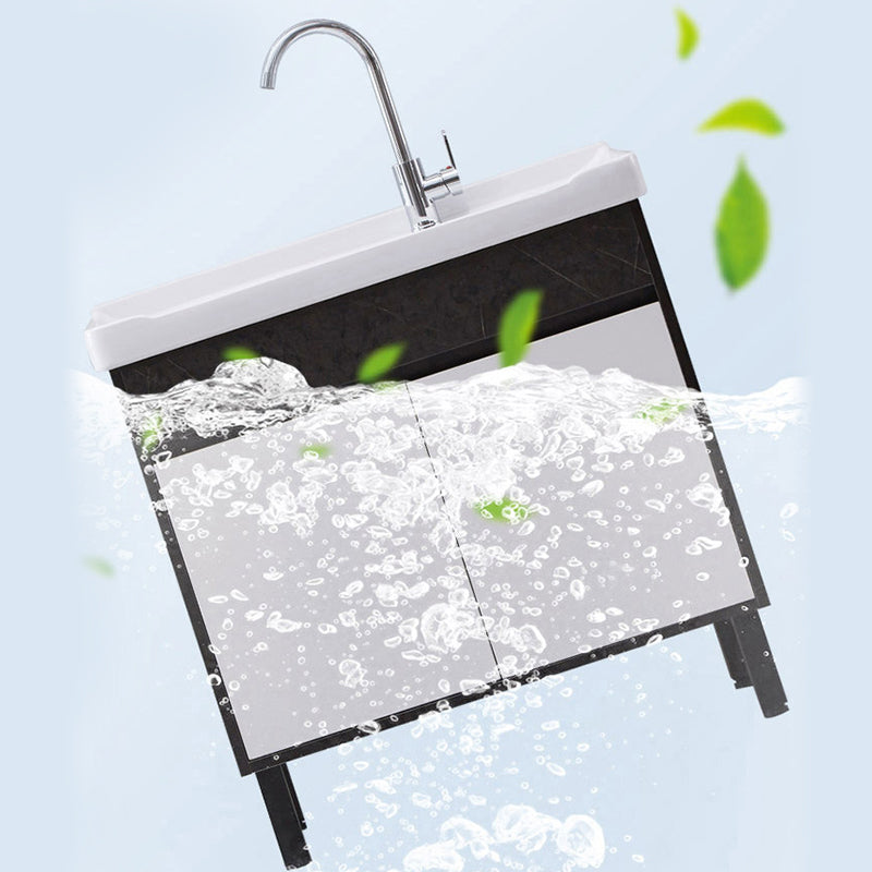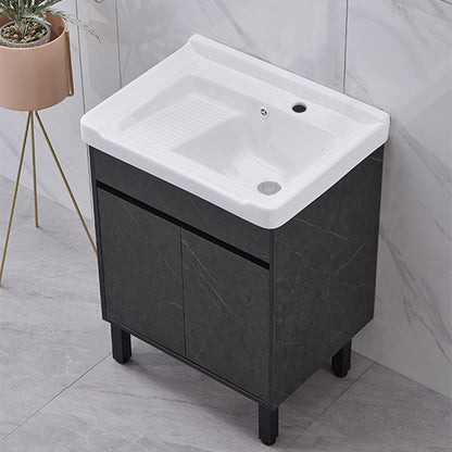 Single Sink Vanity Set Freestanding Rectangle 2 Doors Wood Bath Vanity