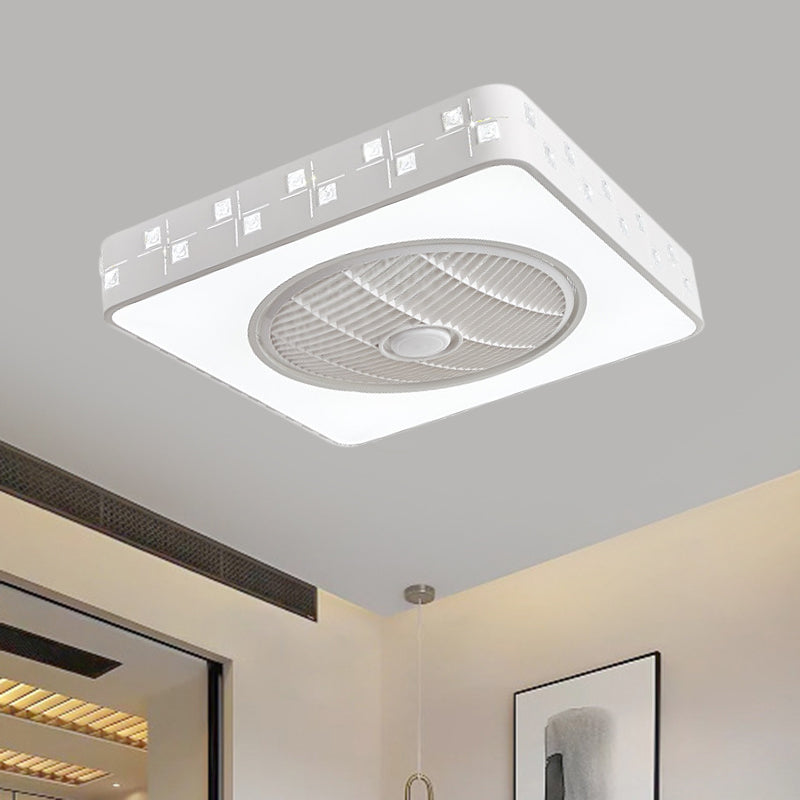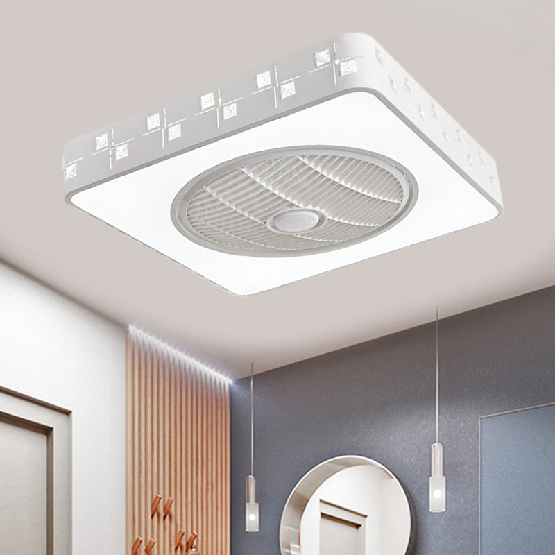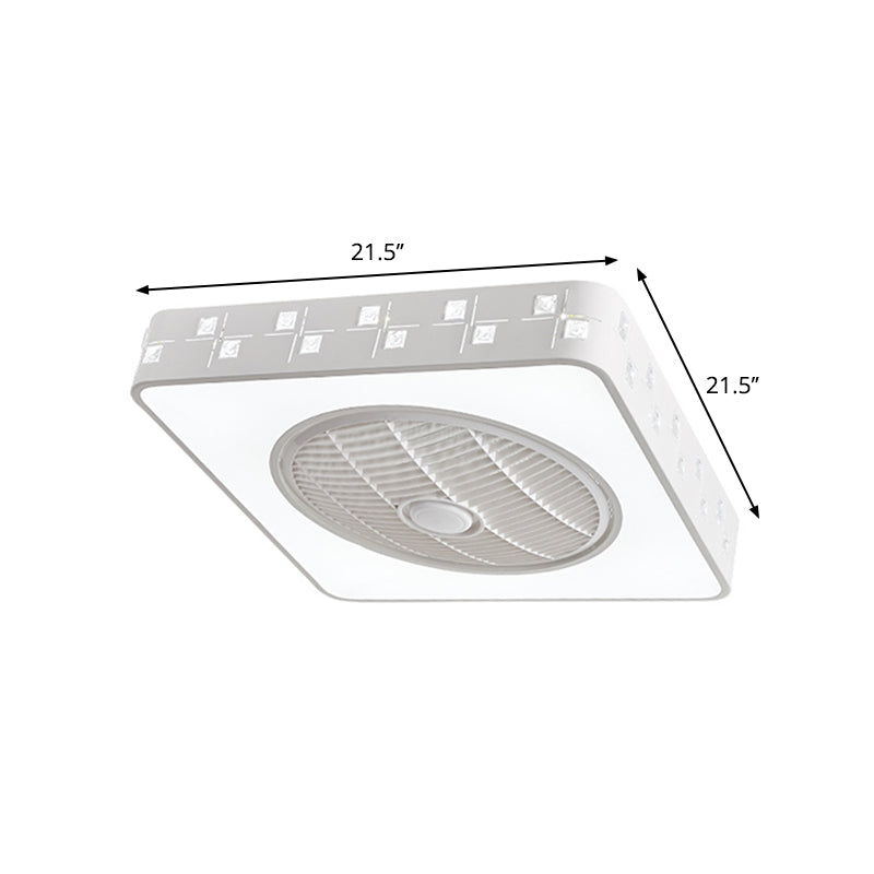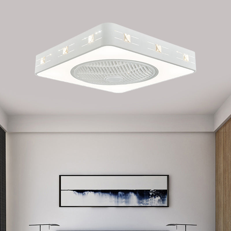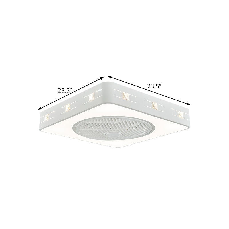 Square Embellished Crystal Hanging Fan Lamp Contemporary 21.5" Width LED Bedroom Semi Flush Light in White Clearhalo 'Ceiling Fans with Lights' 'Ceiling Fans' 'Modern Ceiling Fans' 'Modern' Lighting' 1409145
