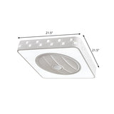 Lampe de ventilateur suspendue carrée ornée de cristal contemporaine de 21,5 po de largeur, lampe LED semi-encastrée pour chambre à coucher en blanc
