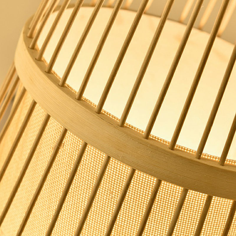 Lampadaire conique contemporain en bambou à ampoule unique pour salon de thé en bois