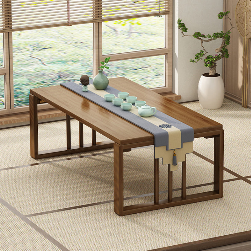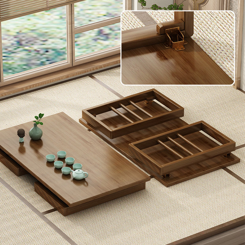 Tableuse d'appoint d'accentuation en bois massif traditionnel en marron avec rectangle