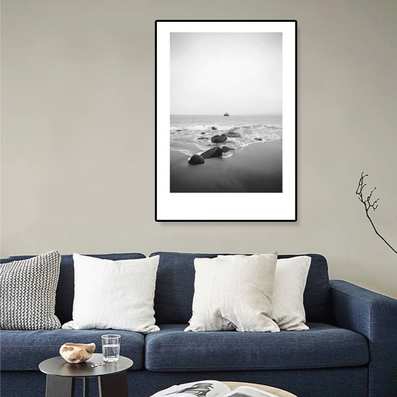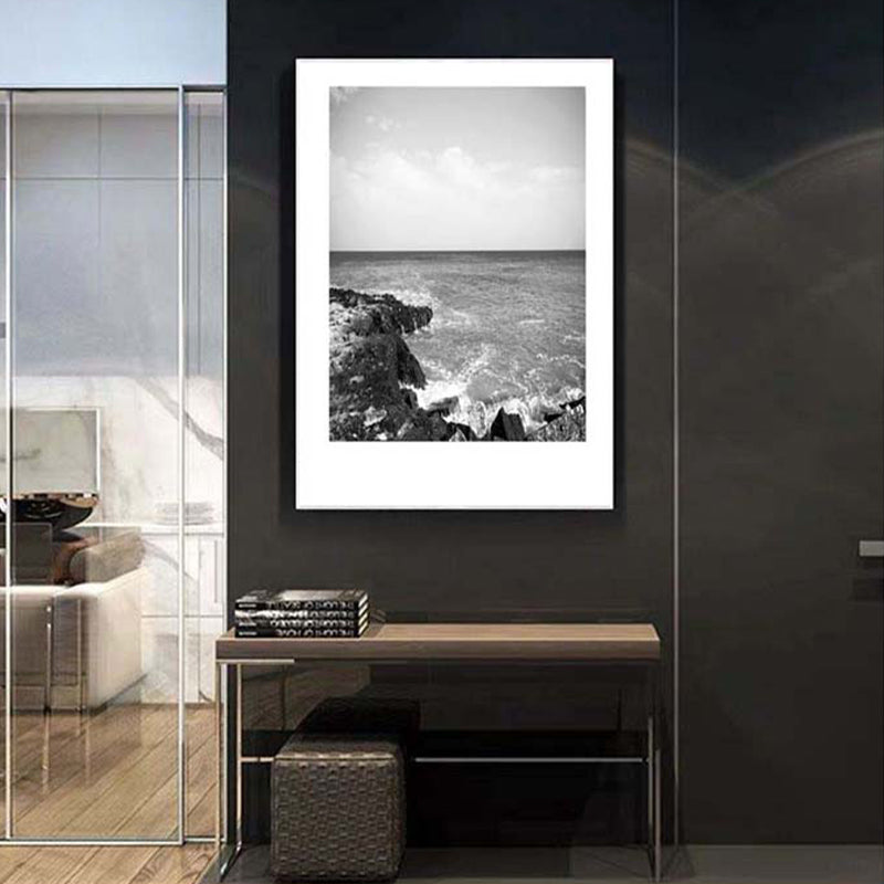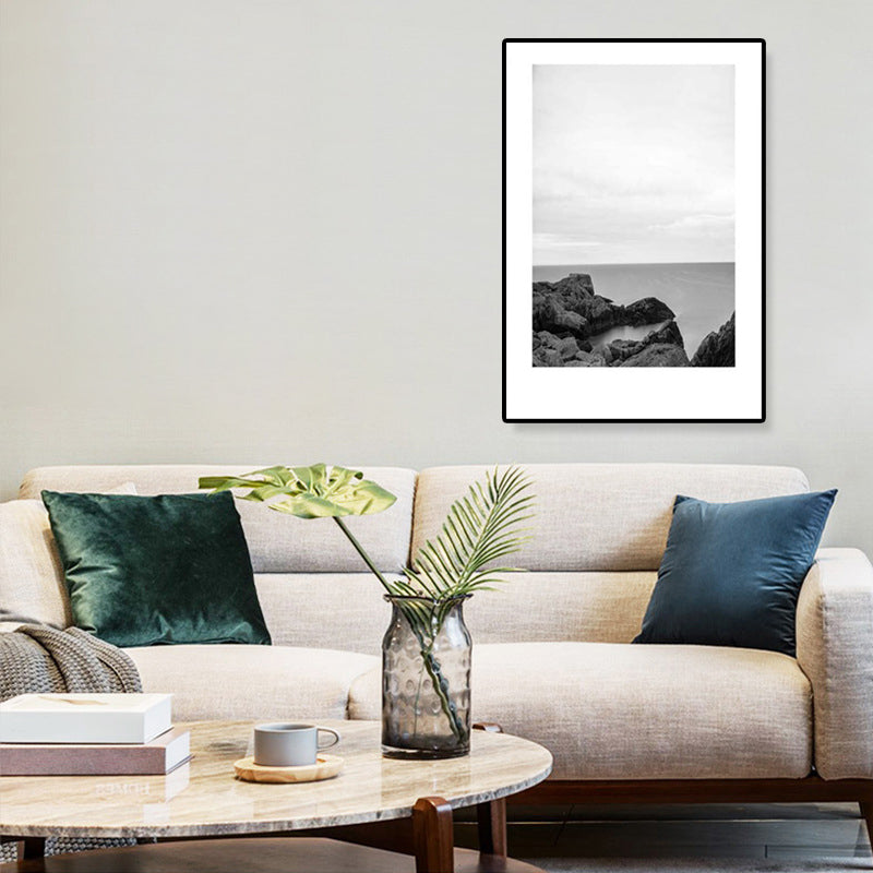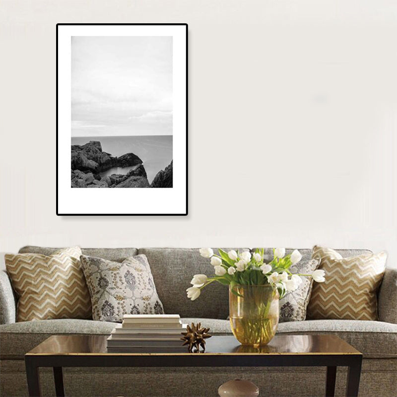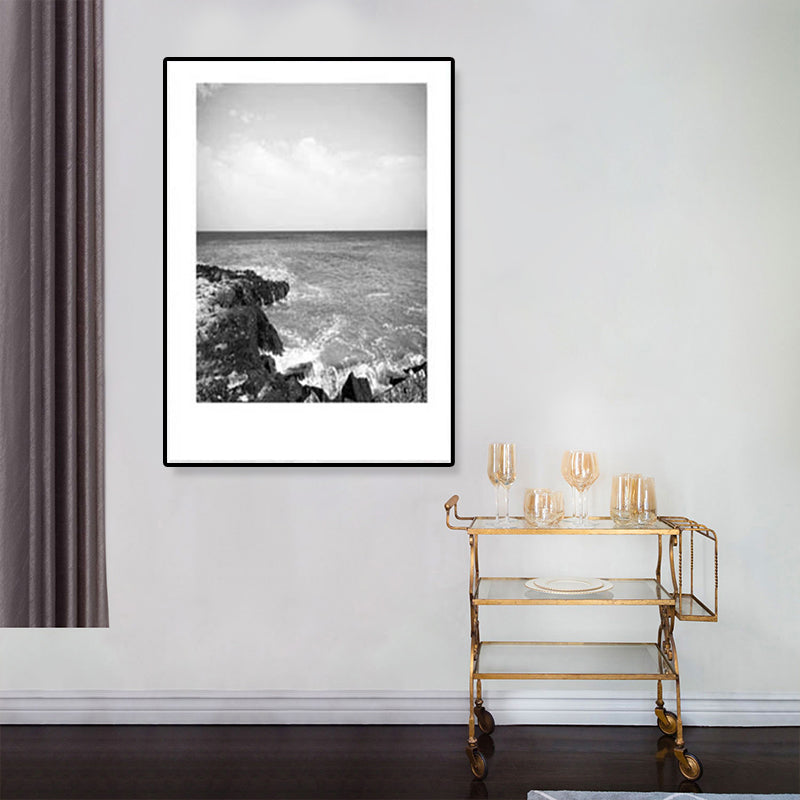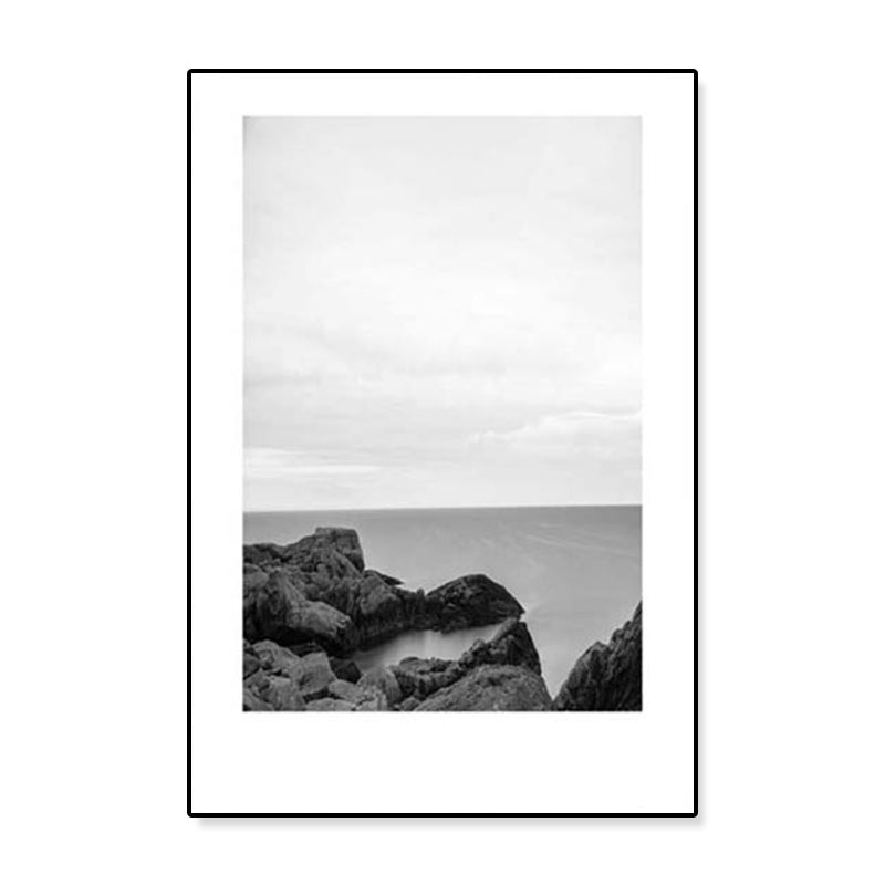 Toile imprimée de paysage marin de Rocky Bay tropicale, Art mural texturé de couleur foncée pour le salon