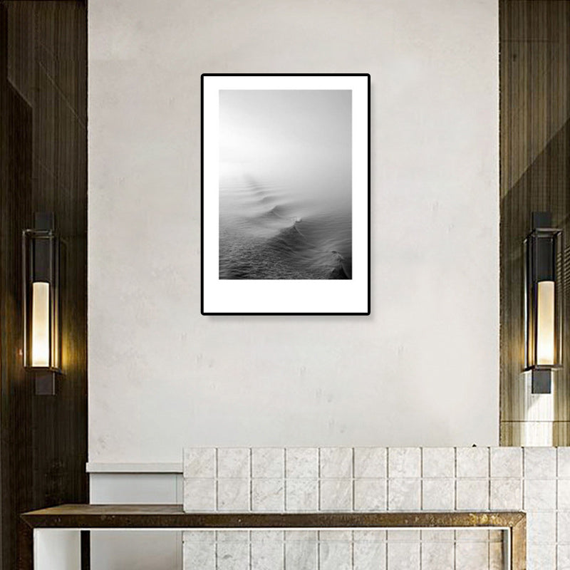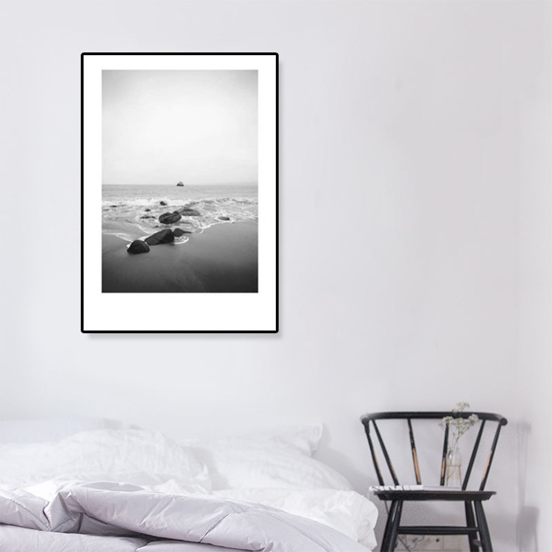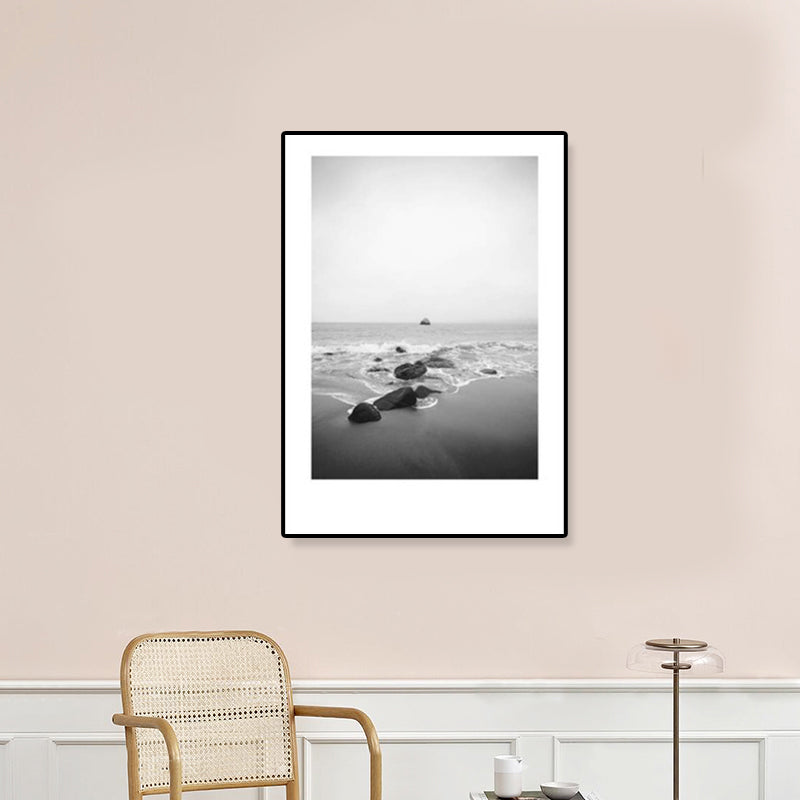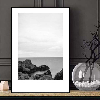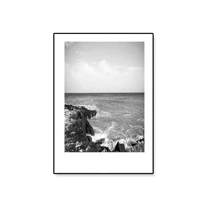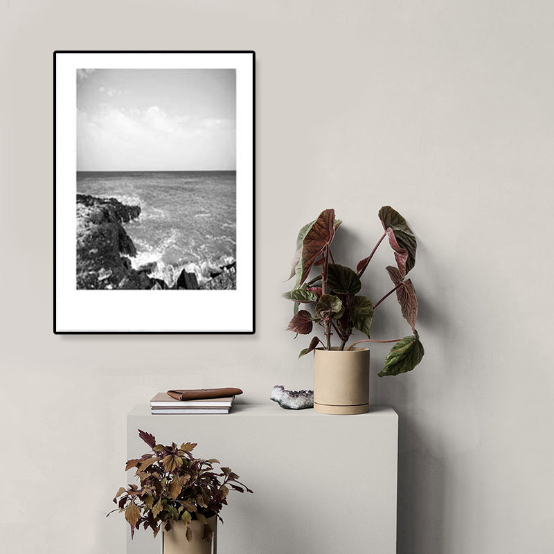 Toile imprimée de paysage marin de Rocky Bay tropicale, Art mural texturé de couleur foncée pour le salon