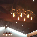 Lampe à suspension en forme de roue de chariot, luminaire industriel multi-suspension en métal