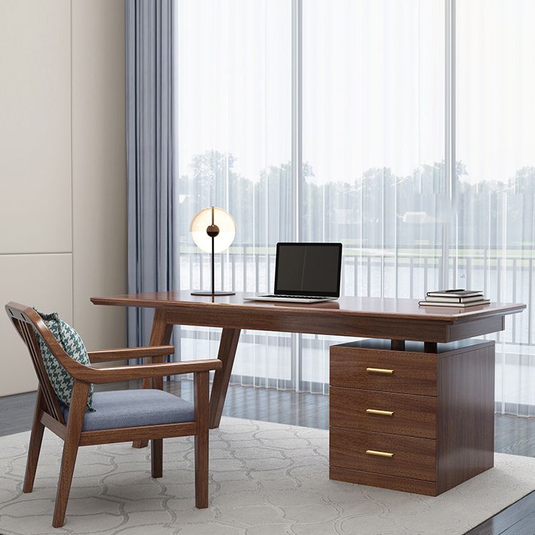 Piède de noix piédestal à domicile bureau bureau marron avec 3 tiroirs