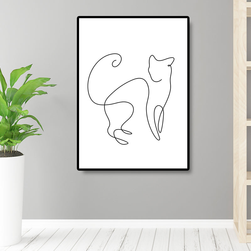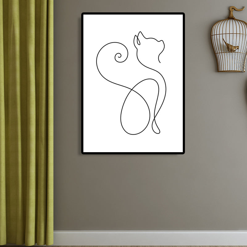 Well-Behaved Cat Wall Decor for Girls Bedroom in White, Multiple Sizes Available White Design 1 Clearhalo 'Art Gallery' 'Canvas Art' 'Contemporary Art Gallery' 'Contemporary Art' 'Minimalism' 'Minimalist Art Gallery' 'Scandinavian' Arts' 1658441