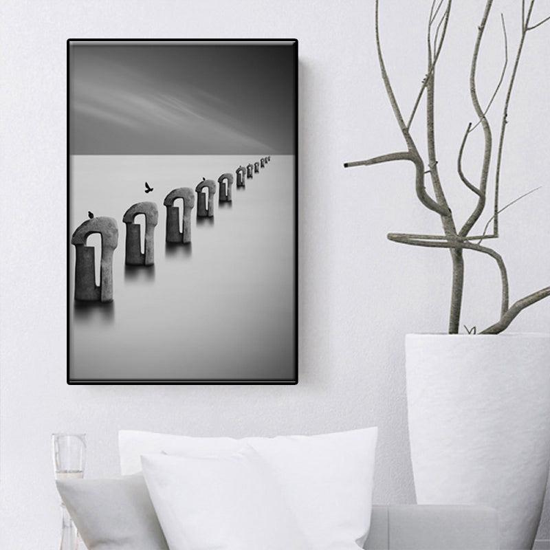 Winterscape Wall Art Minimalist Endless Trunk Canvas Print in Grey for Sitting Room Clearhalo 'Art Gallery' 'Canvas Art' 'Contemporary Art Gallery' 'Contemporary Art' 'Minimalism' 'Minimalist Art Gallery' 'Scandinavian' Arts' 1614921