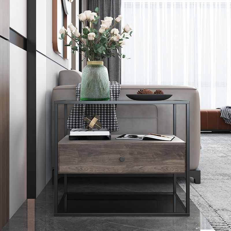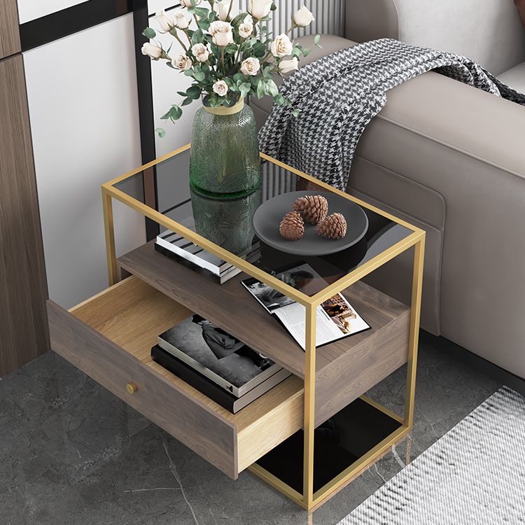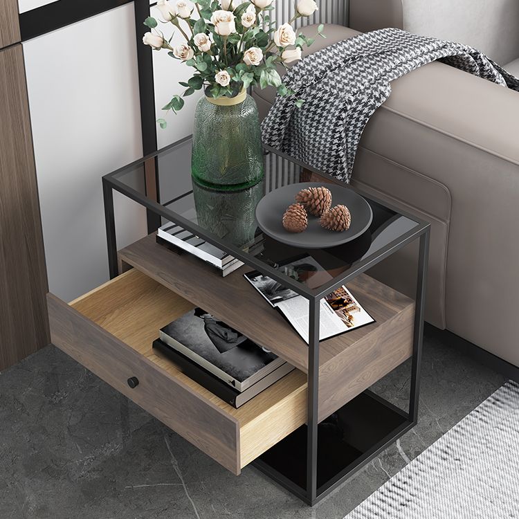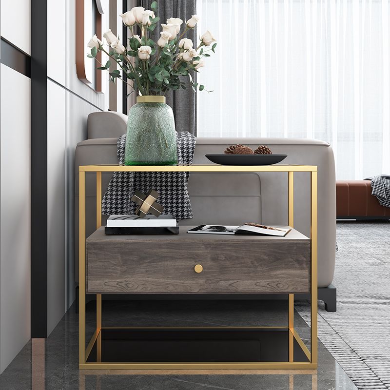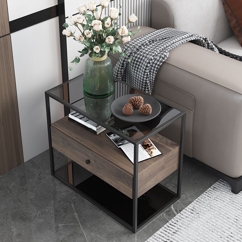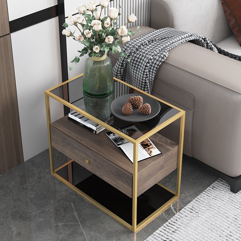 Tavolo laterale superiore rettangolare di vetro rettangolare da 21,65 "Tavolo da telaio in acciaio inossidabile con conservazione