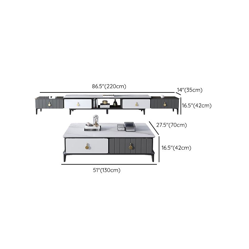 4 gambe tavolo da cocktail caffè con cassetti di stoccaggio moderno top in ardesia