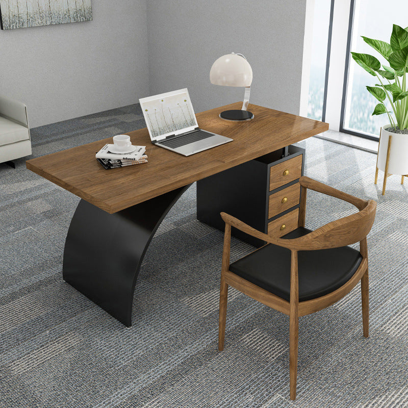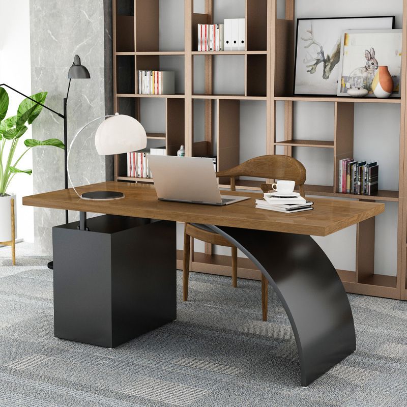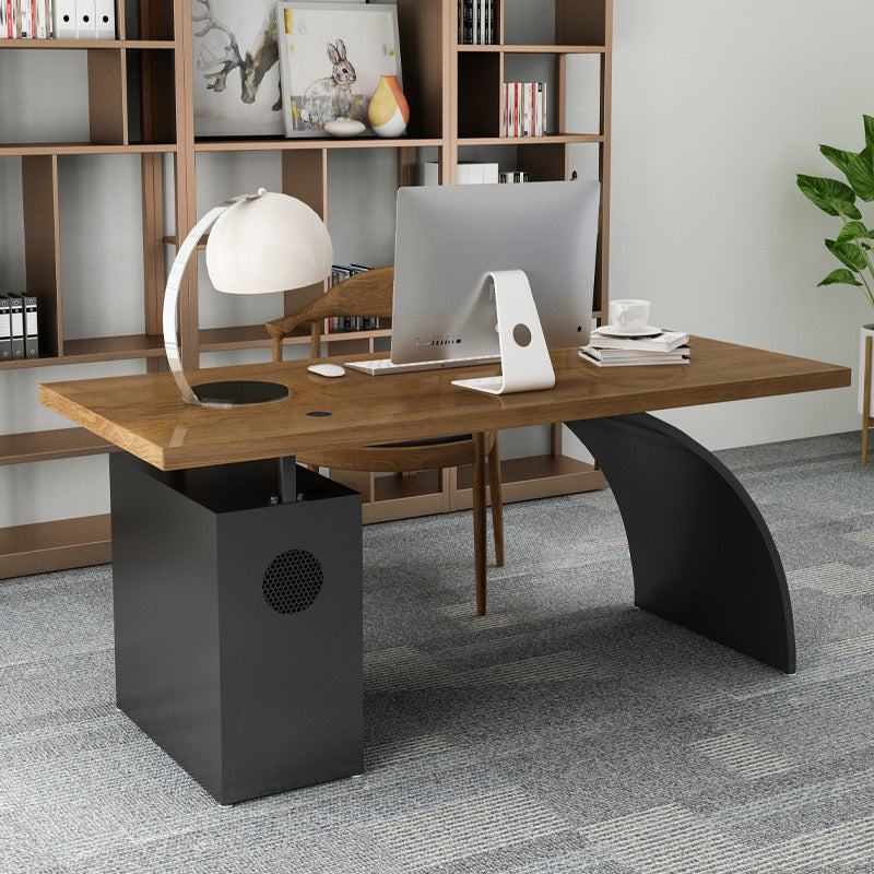 Scrivania marrone e nero da ufficio rettangolare scrivania in legno pino e metallo