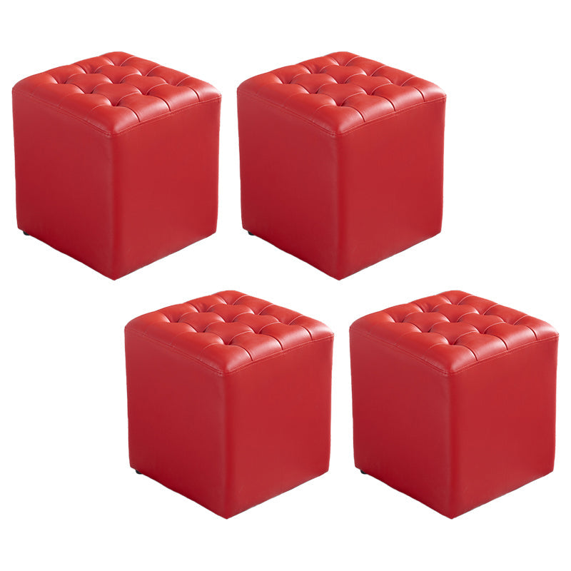 Pouf in pelle giallo quadrata resistente alla macchia contemporanea
