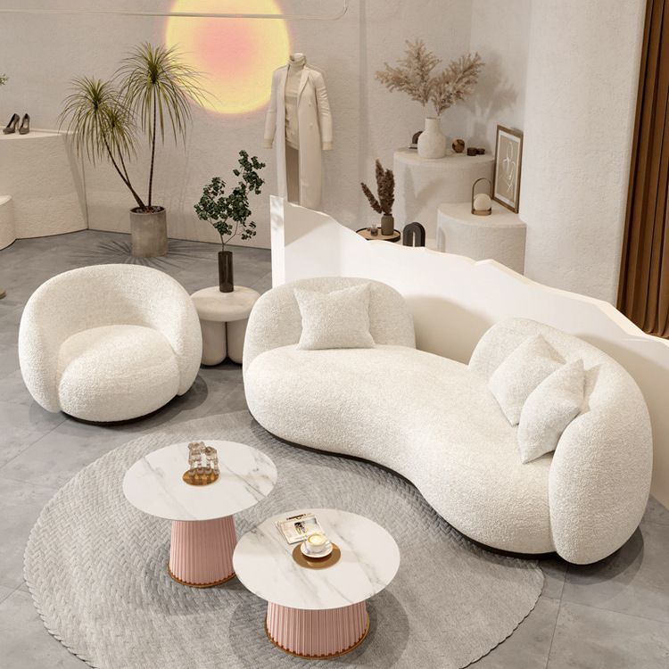 Divano di lana bianco contemporaneo con braccio di smoking e base nera per l'appartamento