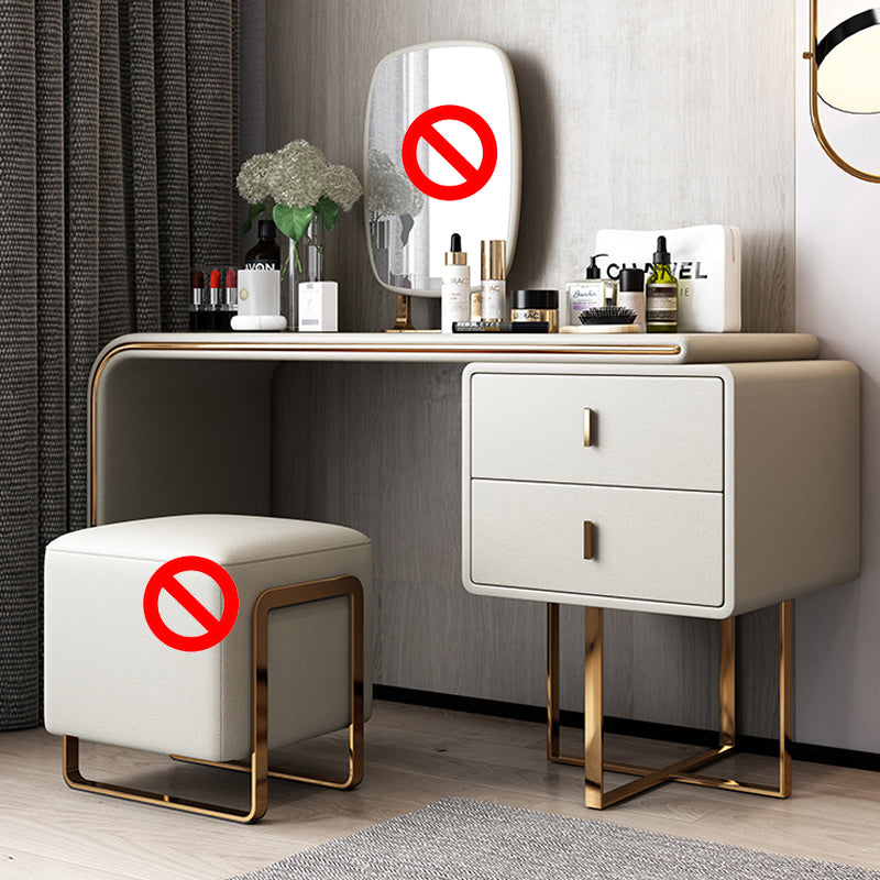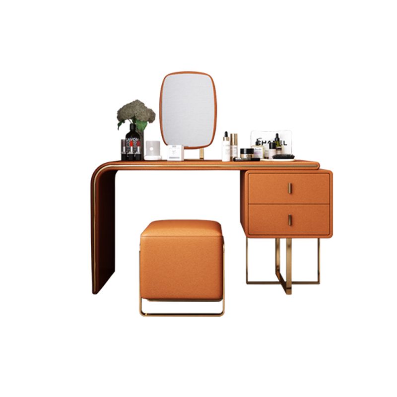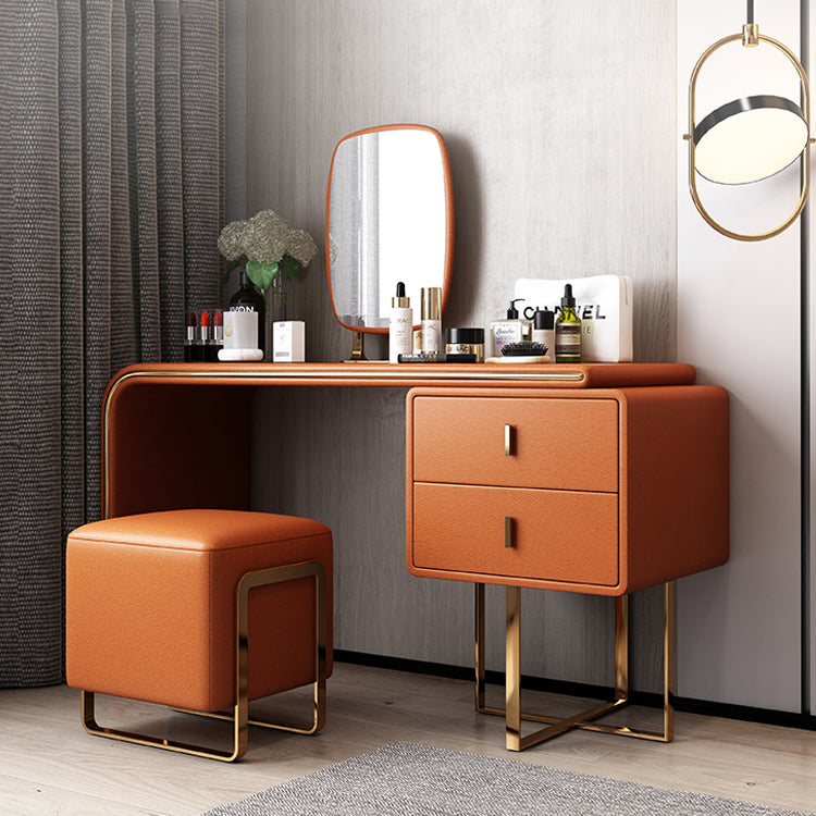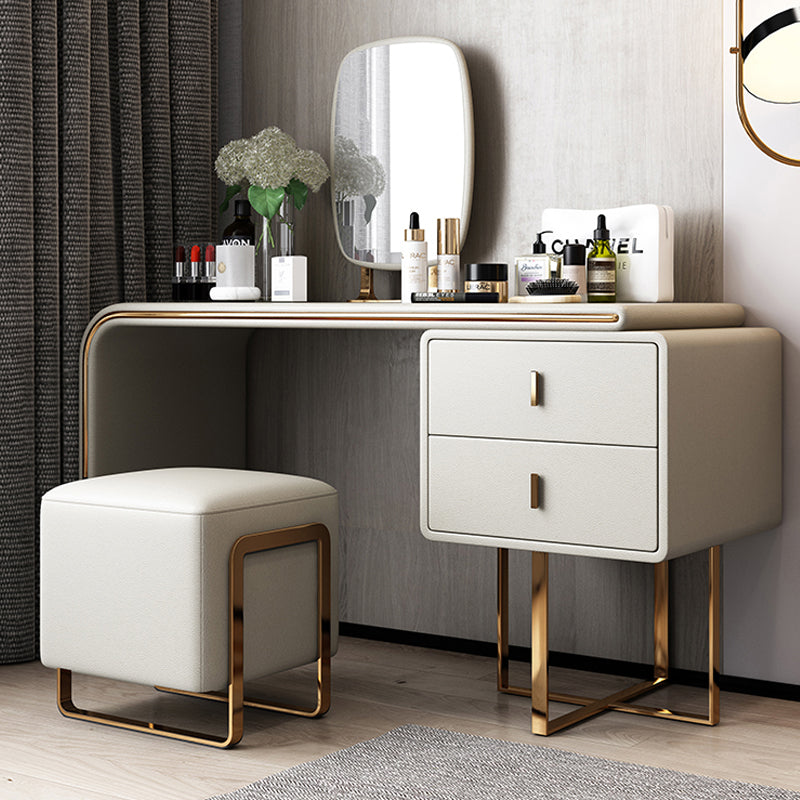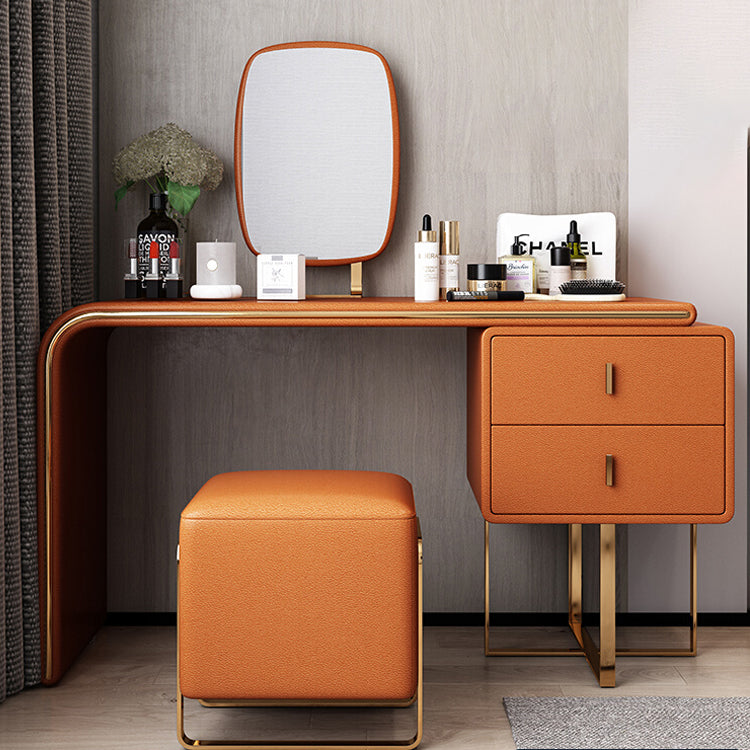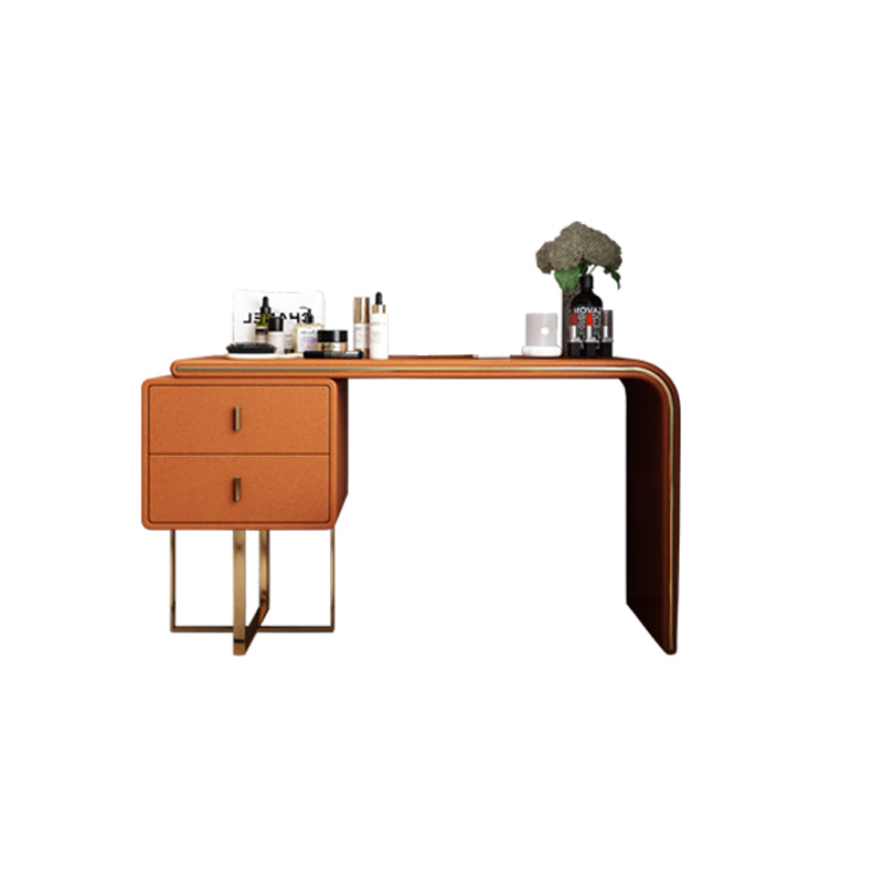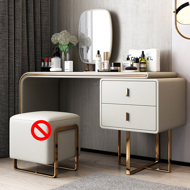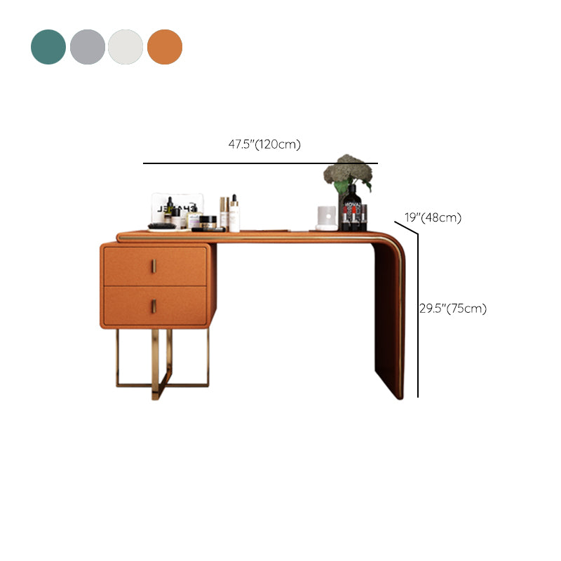 Tavolo da toeletta per vanità in legno di trucco in pelle con 2 cassetti di stoccaggio