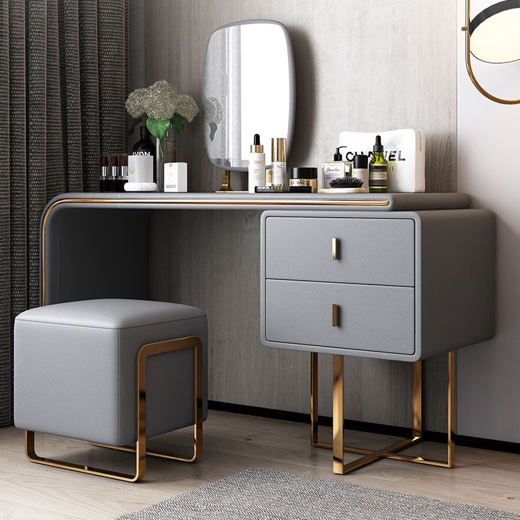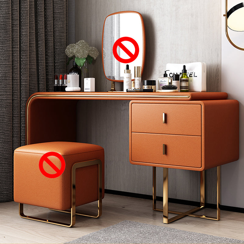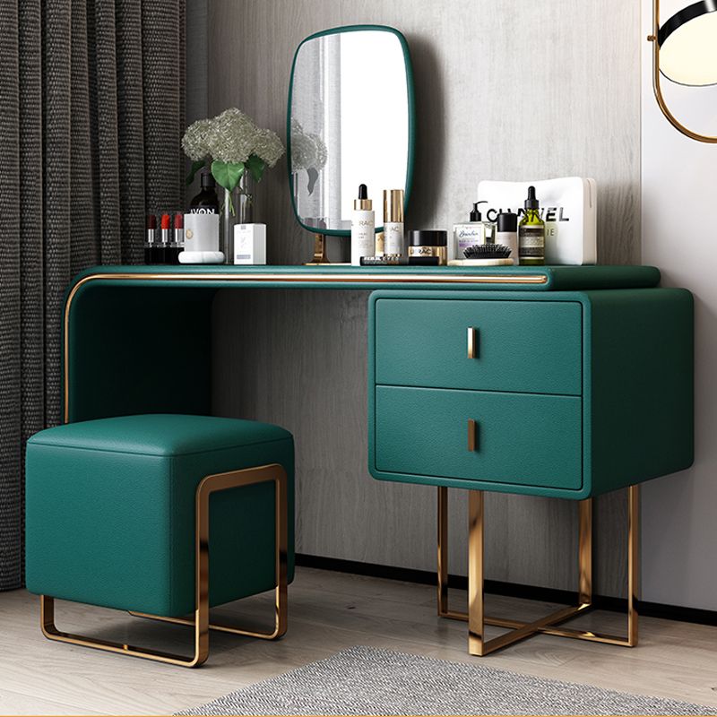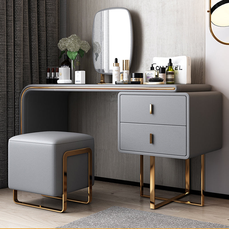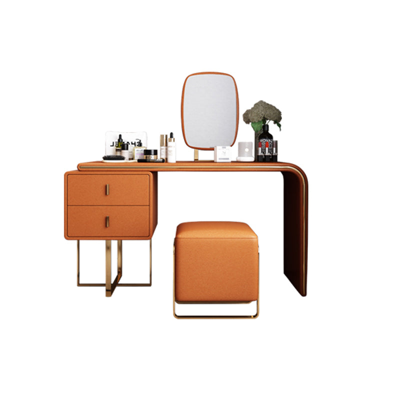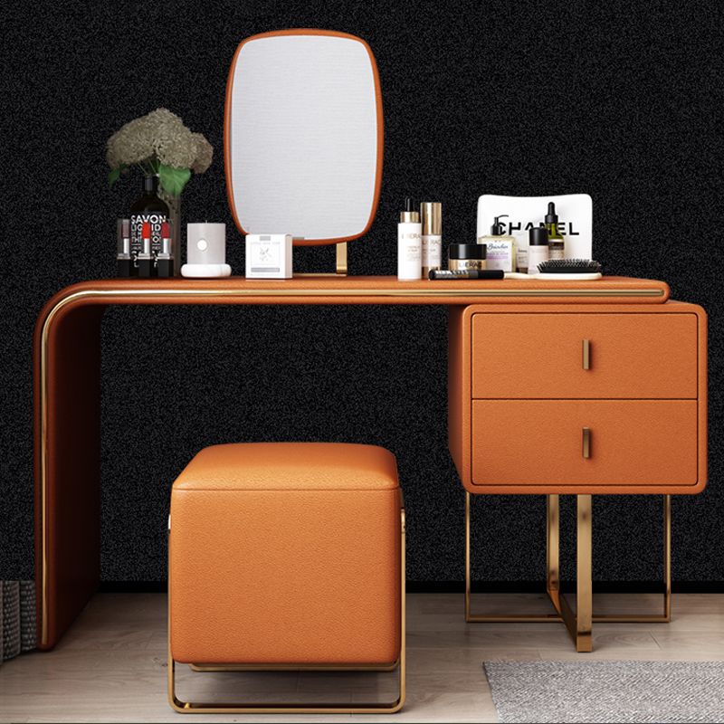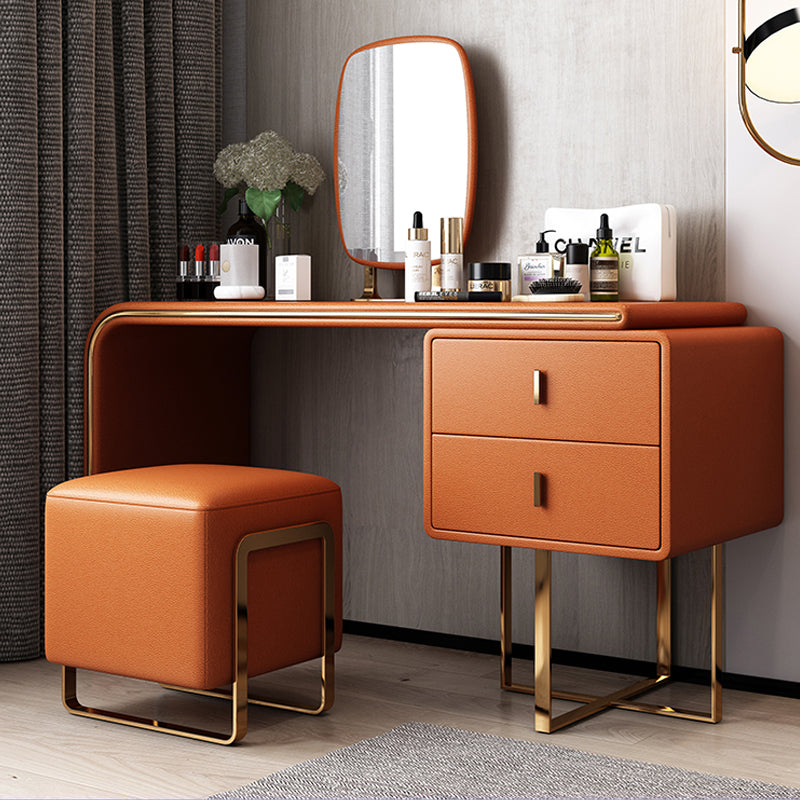 Tavolo da toeletta per vanità in legno di trucco in pelle con 2 cassetti di stoccaggio