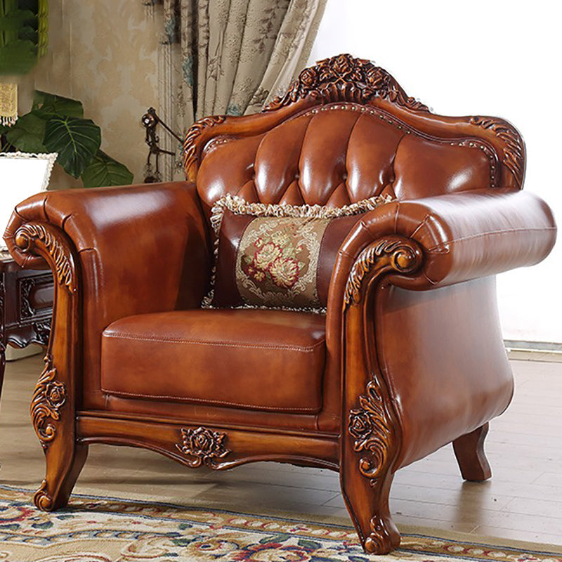Soluido divano a braccio rotondo in pelle in pelle in pelle in pelle in marrone