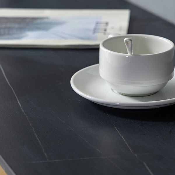 Tavolo da pub rettangolo glam in pietra sinterizzata tavolo da cocktail altezza con doppio piedistallo