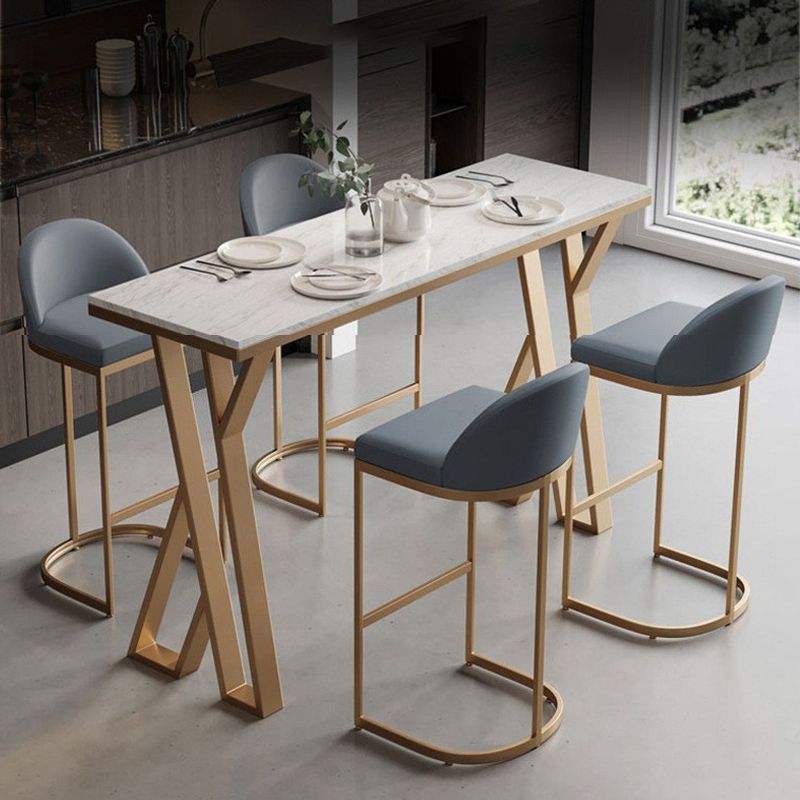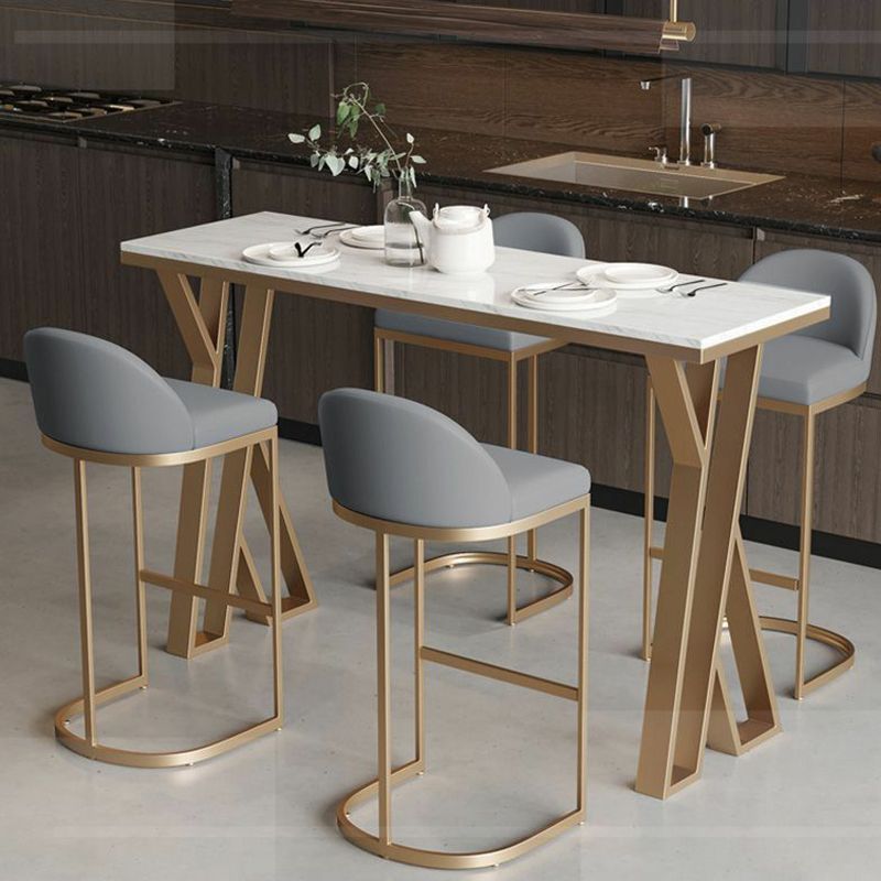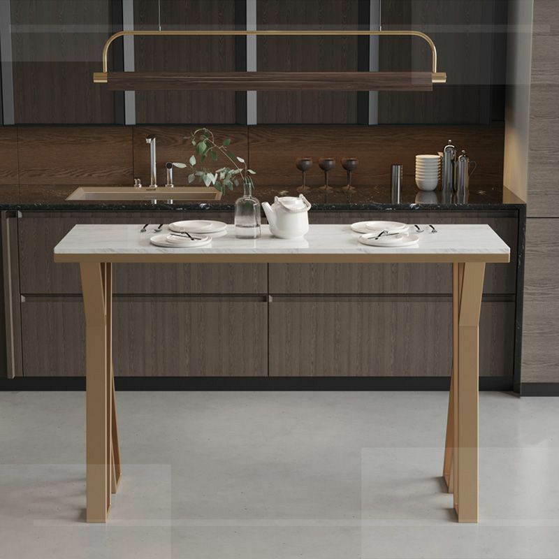 Tavolo da bar a barre rettangolo in stile glam in finta tavolo da vino in marmo in marmo con doppio piedistallo