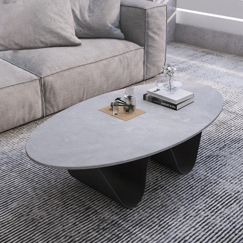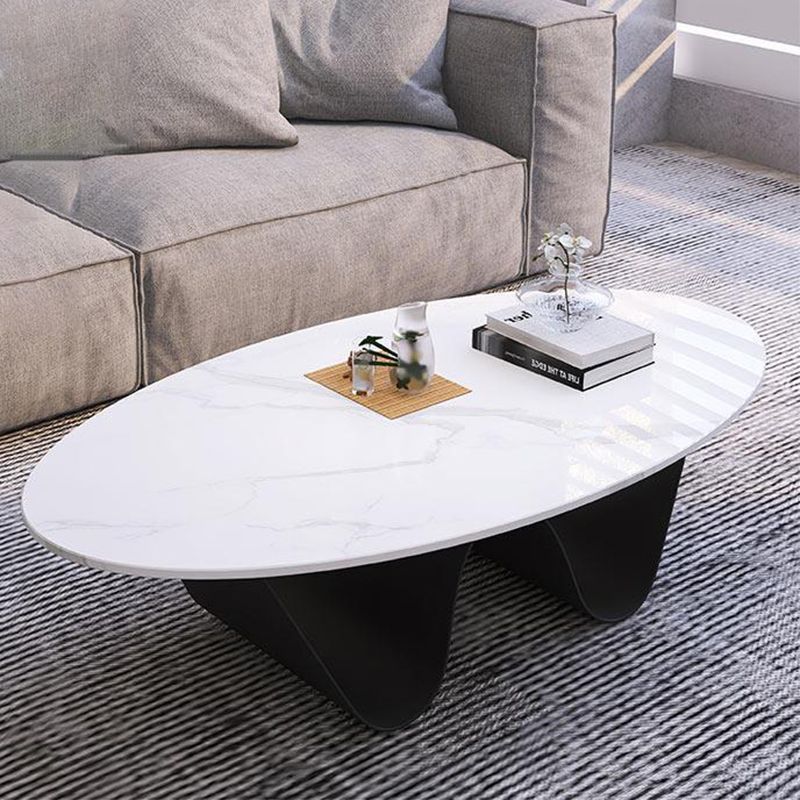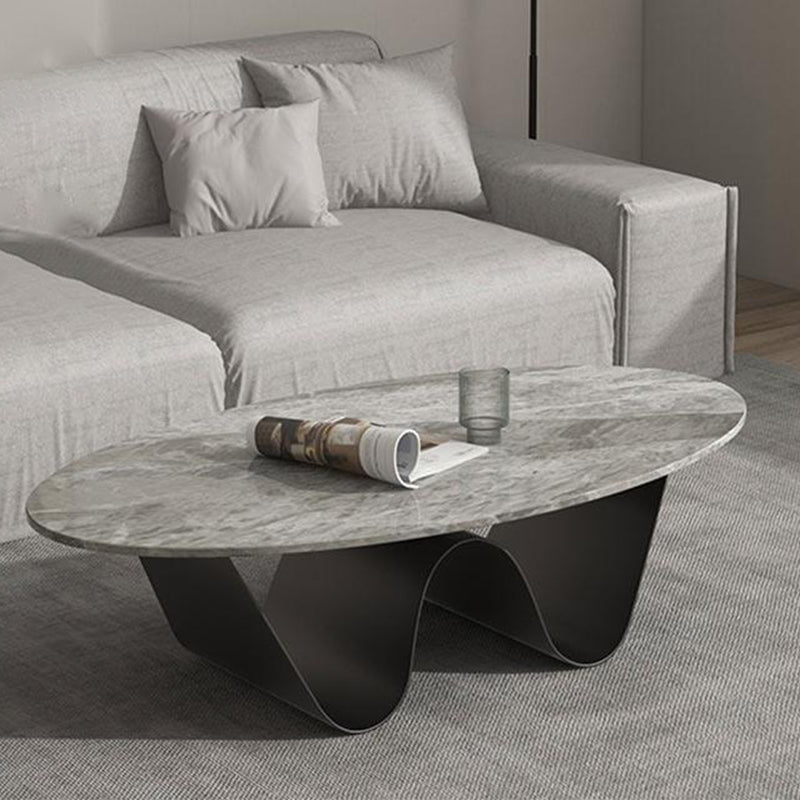 Tavolino top in pietra in stile glam con base in acciaio nel tavolo da cocktail ovale