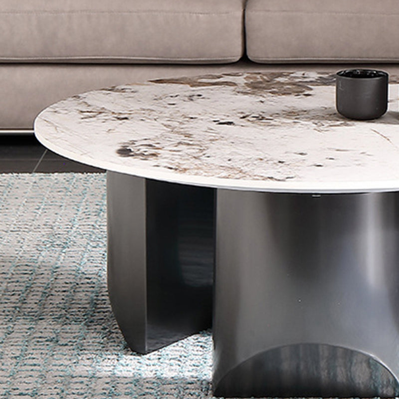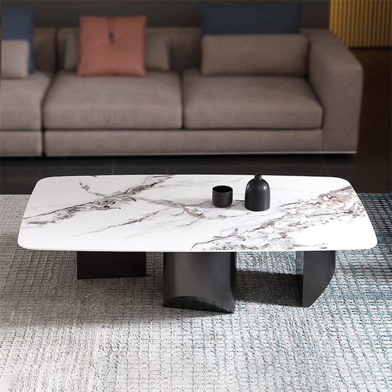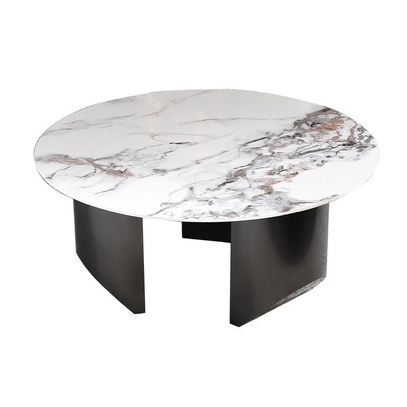 Tavolino bianco glam con 3 gambe in acciaio nero e top in pietra