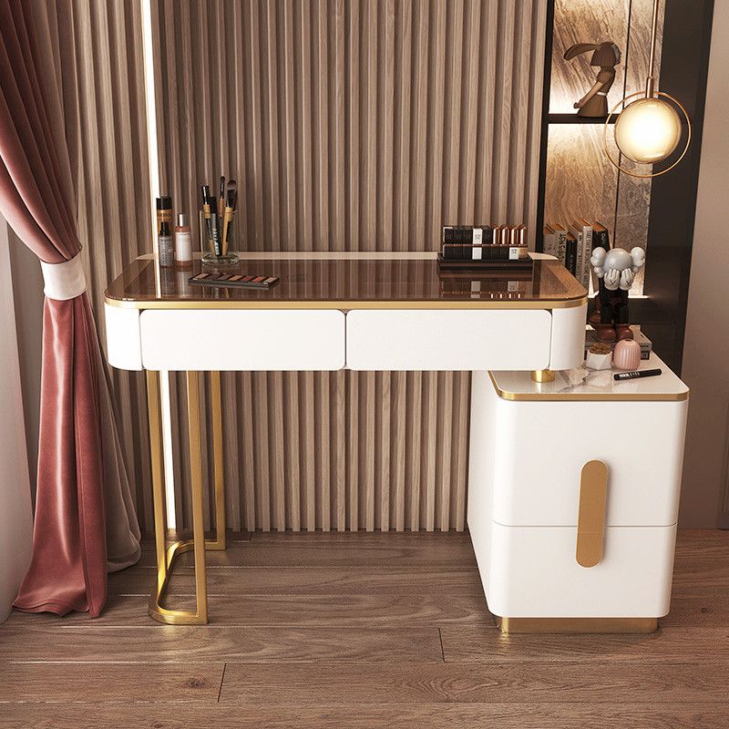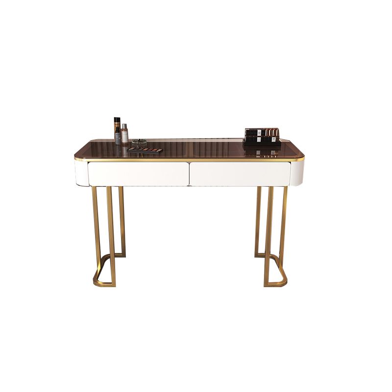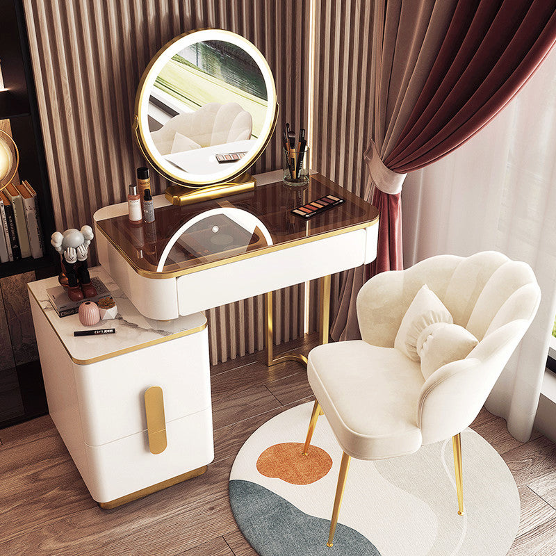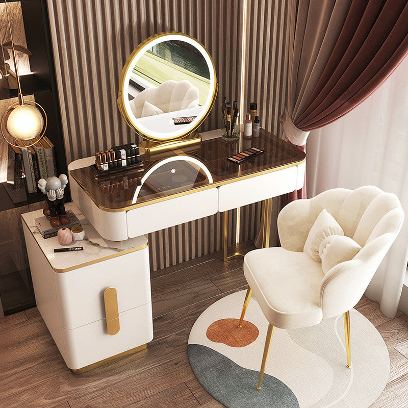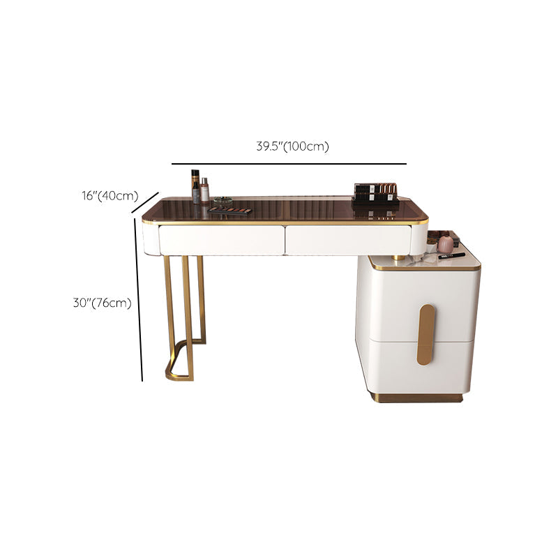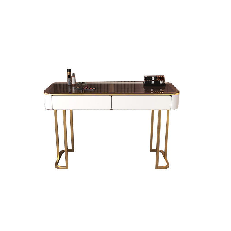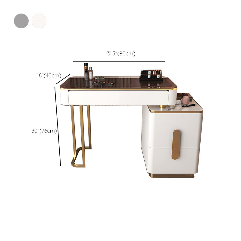 Tavolo da toeletta in legno per trucco top in vetro con cassetti di stoccaggio