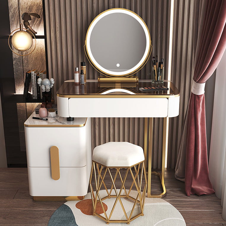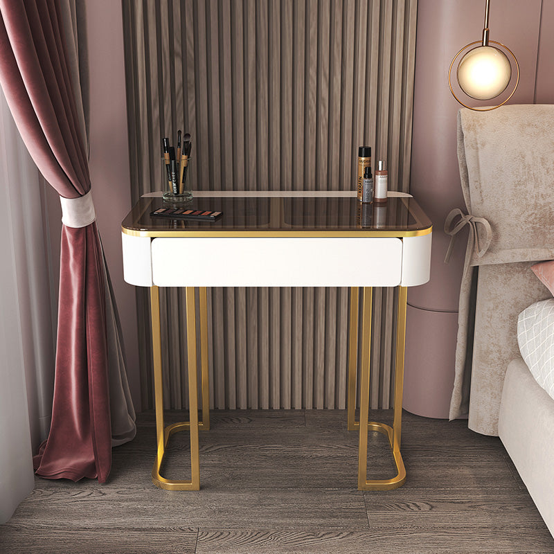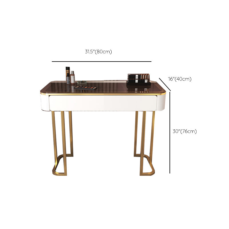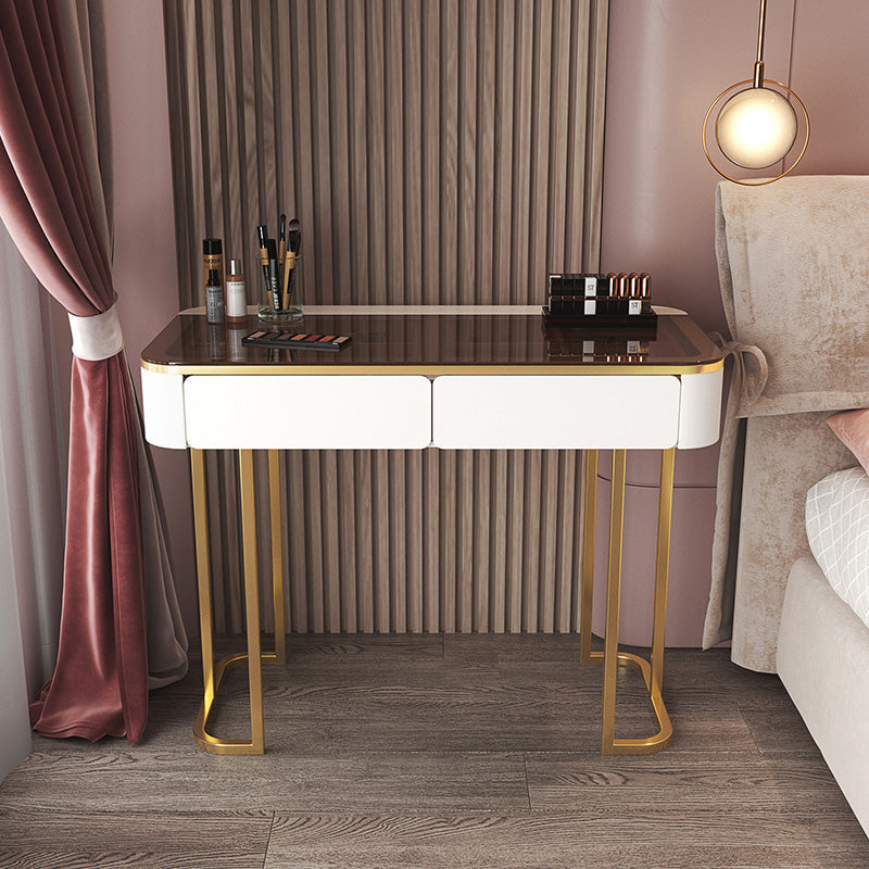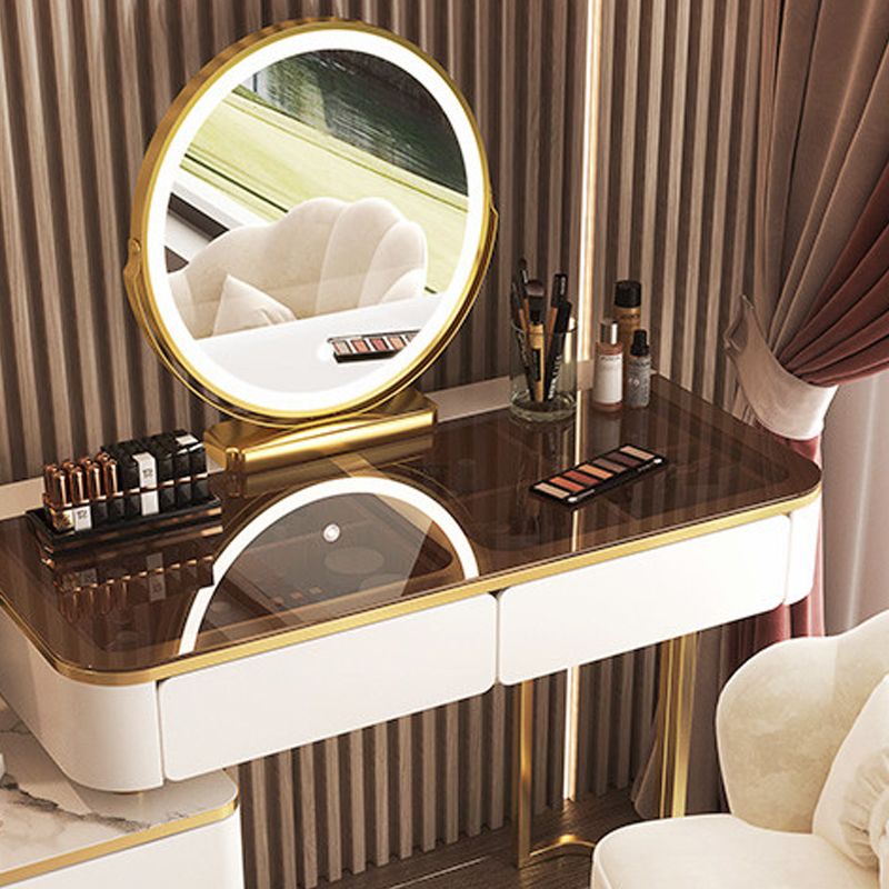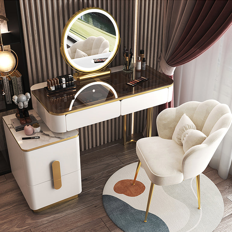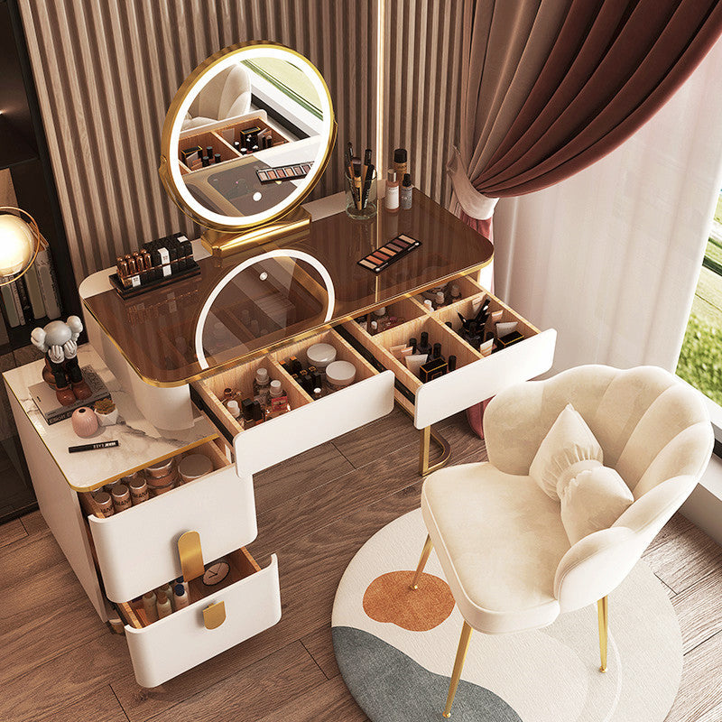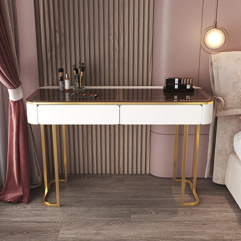 Tavolo da toeletta in legno per trucco top in vetro con cassetti di stoccaggio