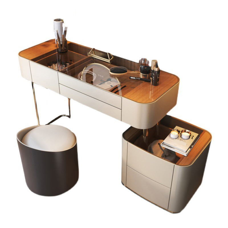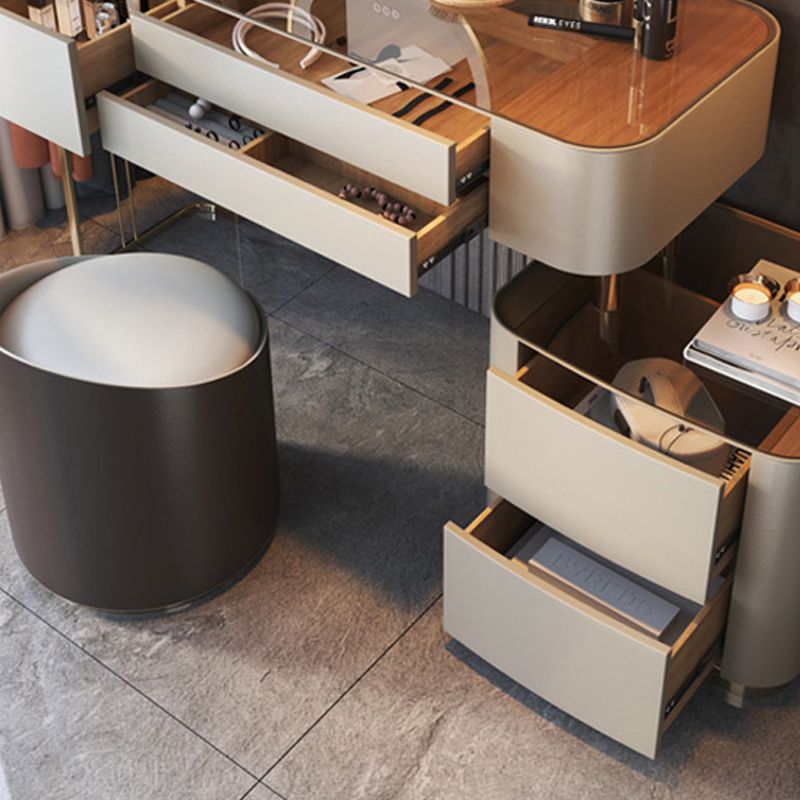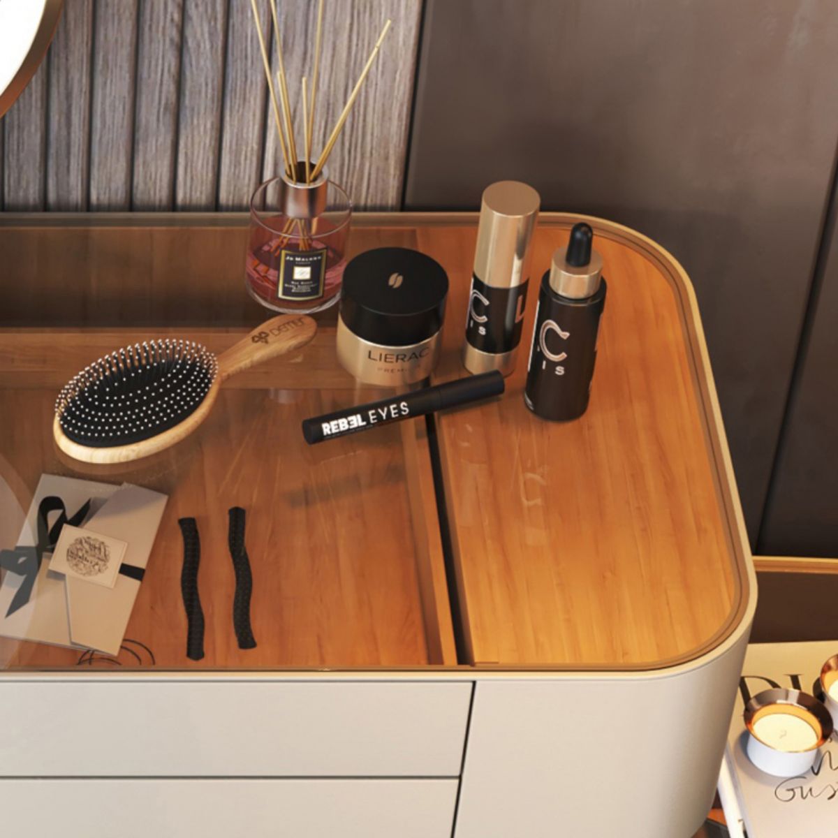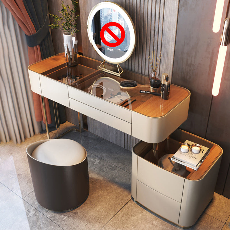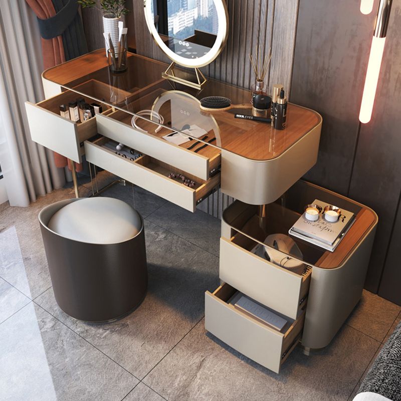 Scrivania di vanità in vetro con 5 cassetti di stoccaggio da 16.14 "set di vanità in legno largo