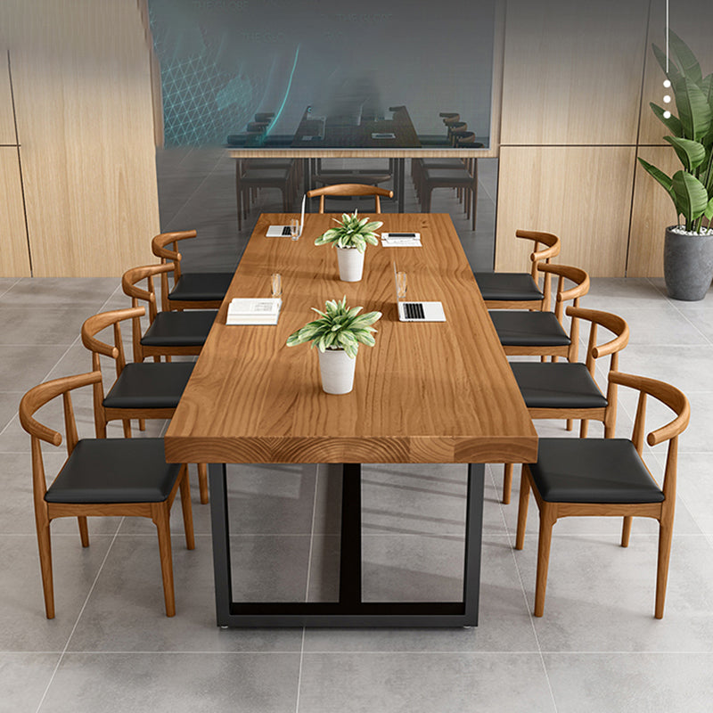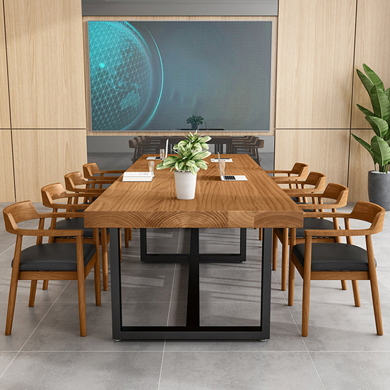 Scrivania per ufficio in legno di pino industriale scrivania rettangolare marrone con cavalletto in metallo