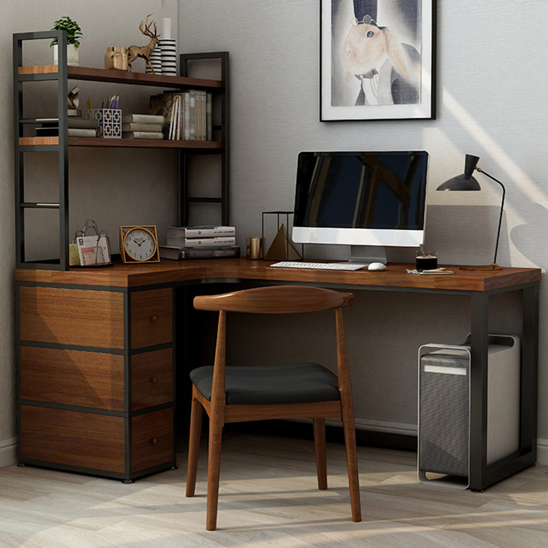 Scrivania di scrittura in stile industriale in legno massiccio a forma di ufficio