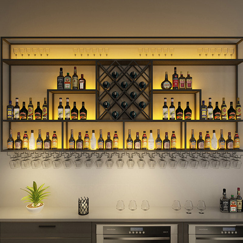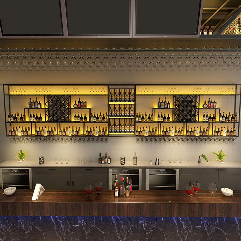 Scaffale per vino di ferro moderno a parete a parete portatore di vino in nero
