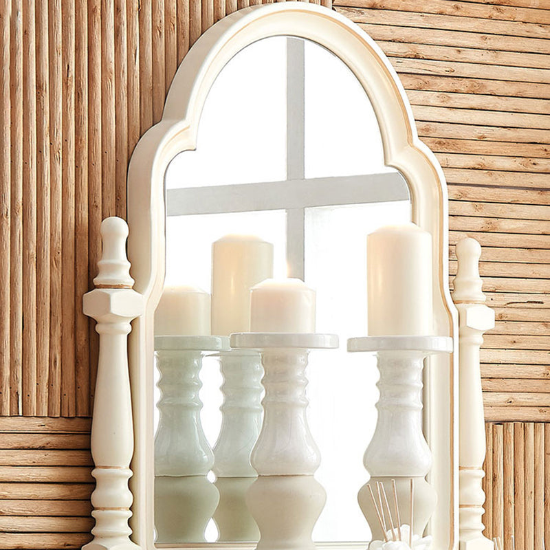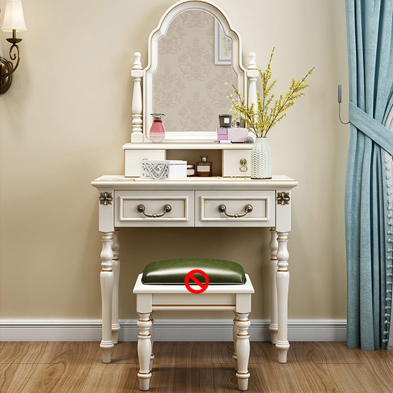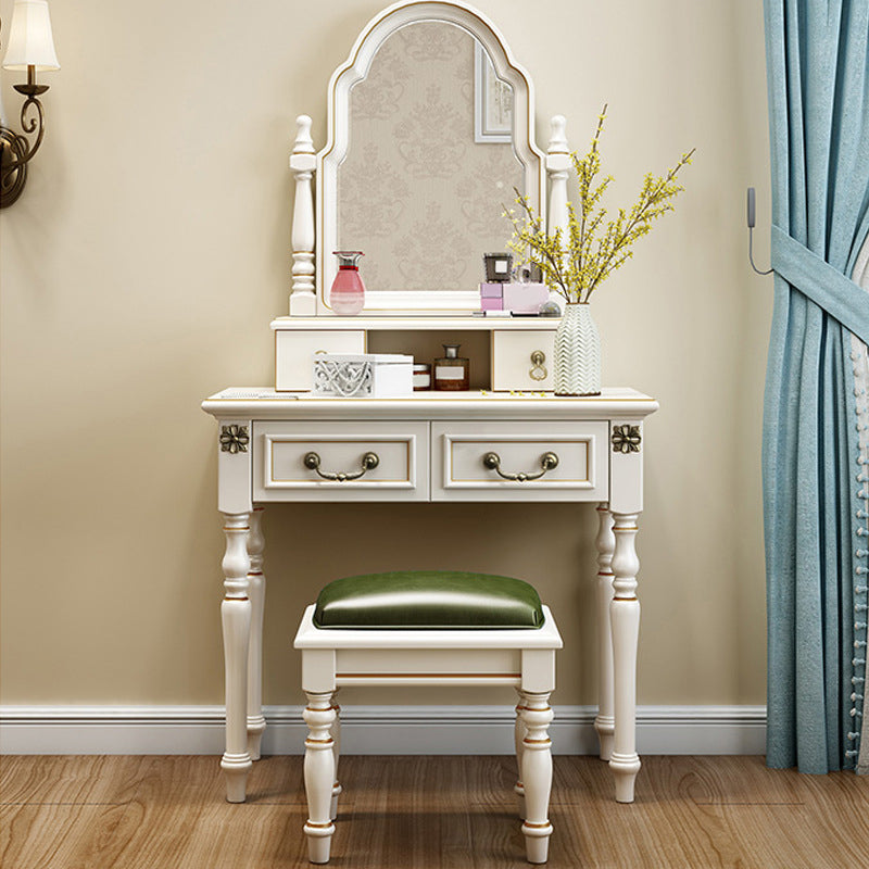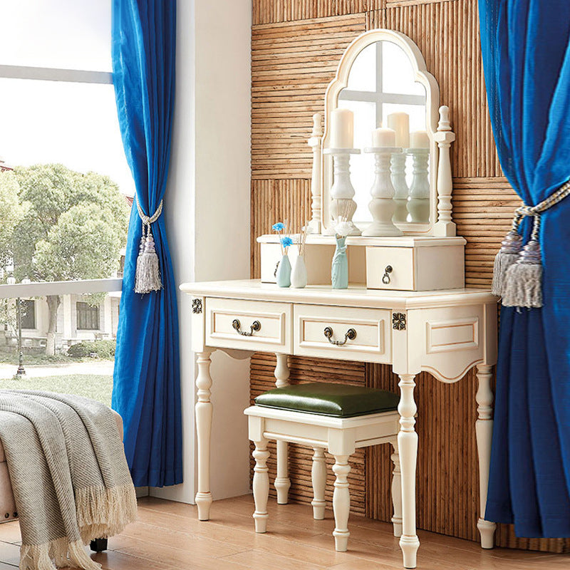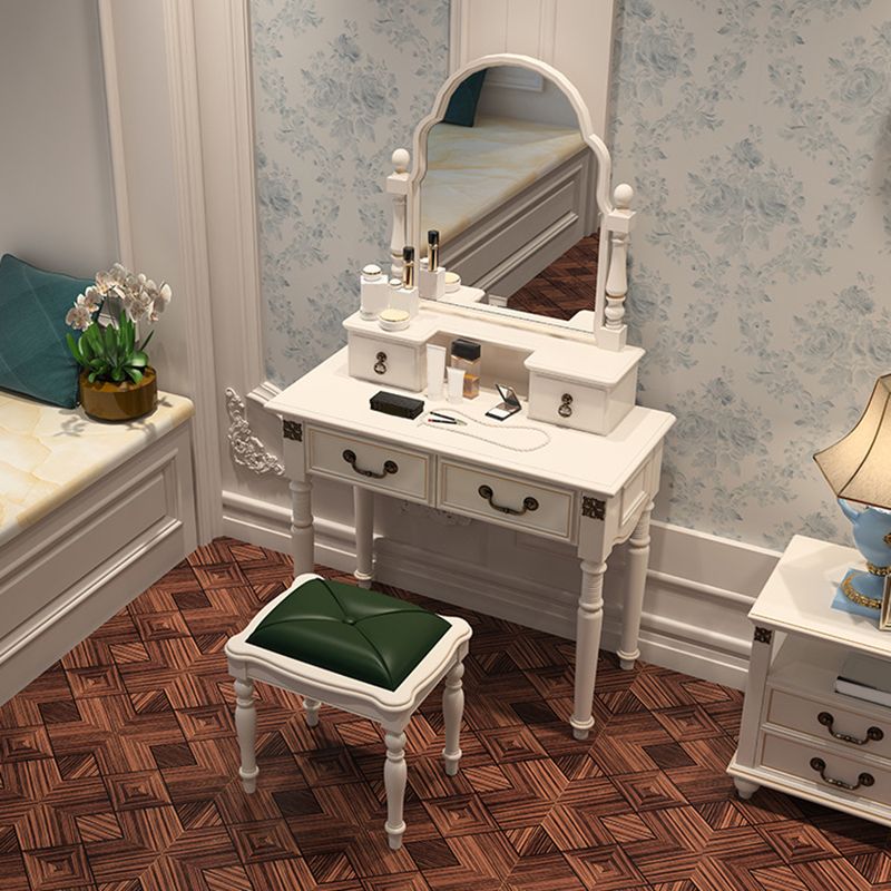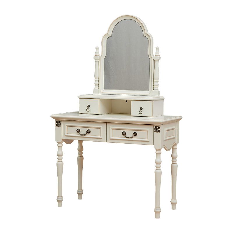Scrivania di vanità a specchio avorio con 4 cassetti in legno vittoriano
