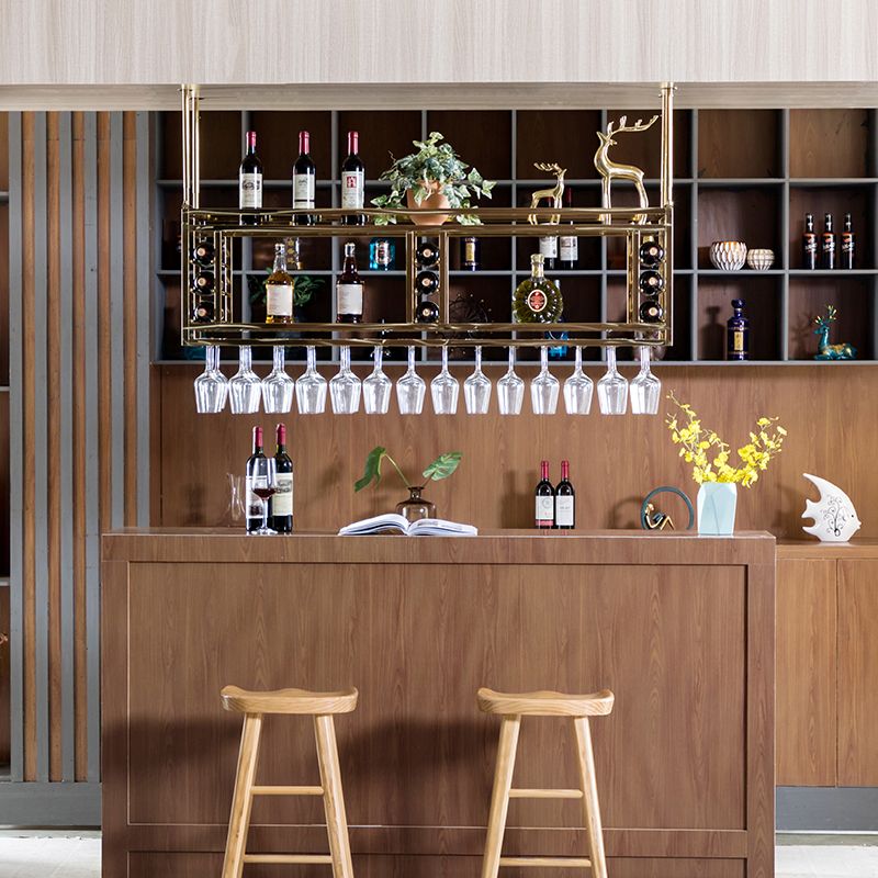 Porta del vino sospeso in metallo da cucina con supporto di vetro e scaffale