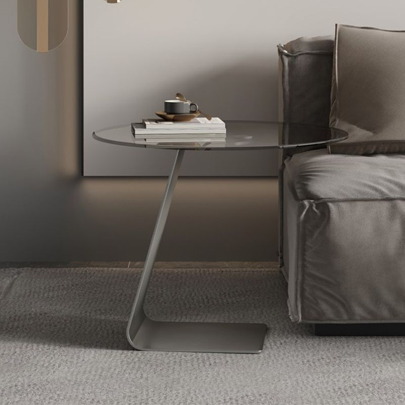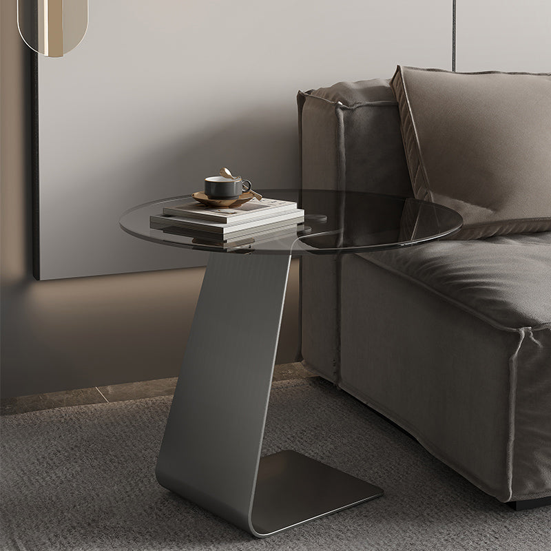 Tavolo di vetro rotondo a forma di forma C di metà secolo.