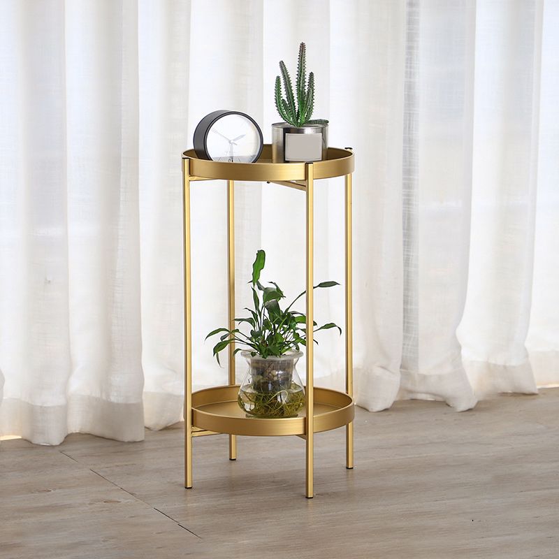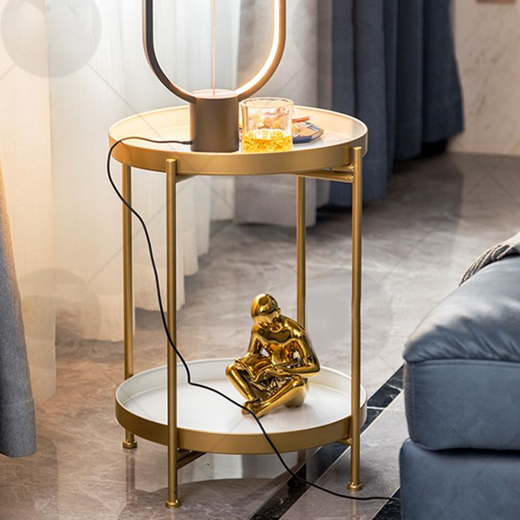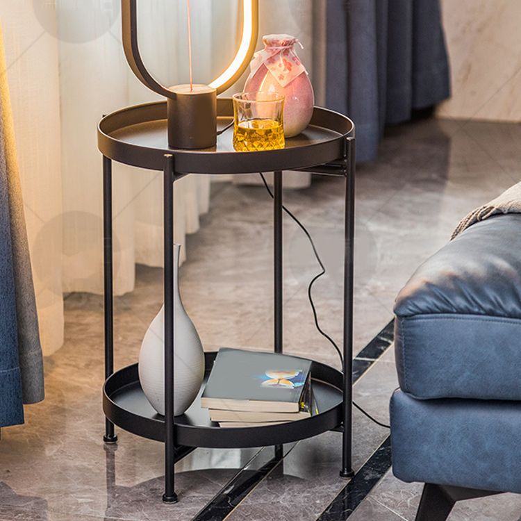 Tavolo laterale superiore del vassoio rotondo della metà del secolo Metal 4 gambe tavolino con scaffale