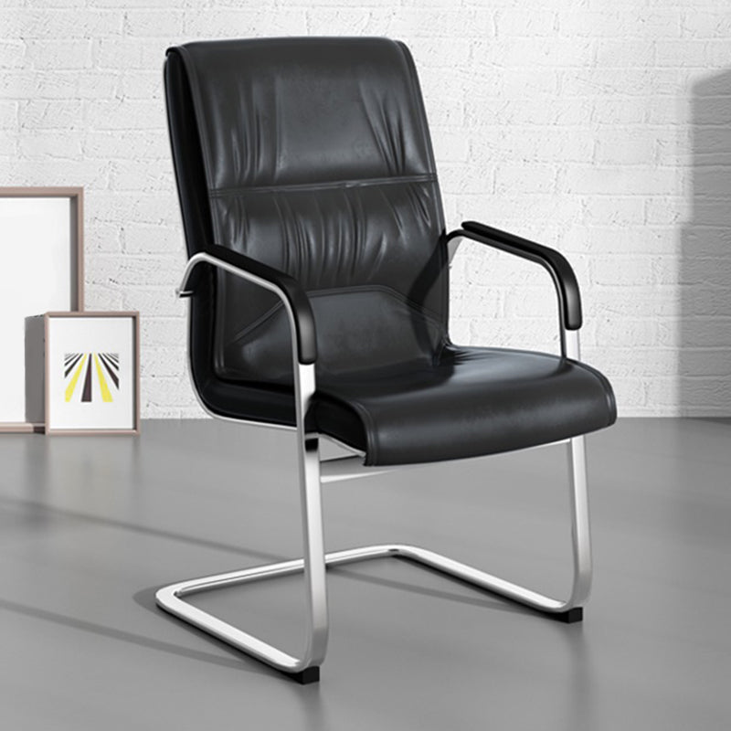 Sedia da ufficio a bracci fissi moderni in pelle senza ruote sedia da scrivania ergonomica