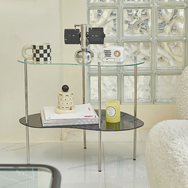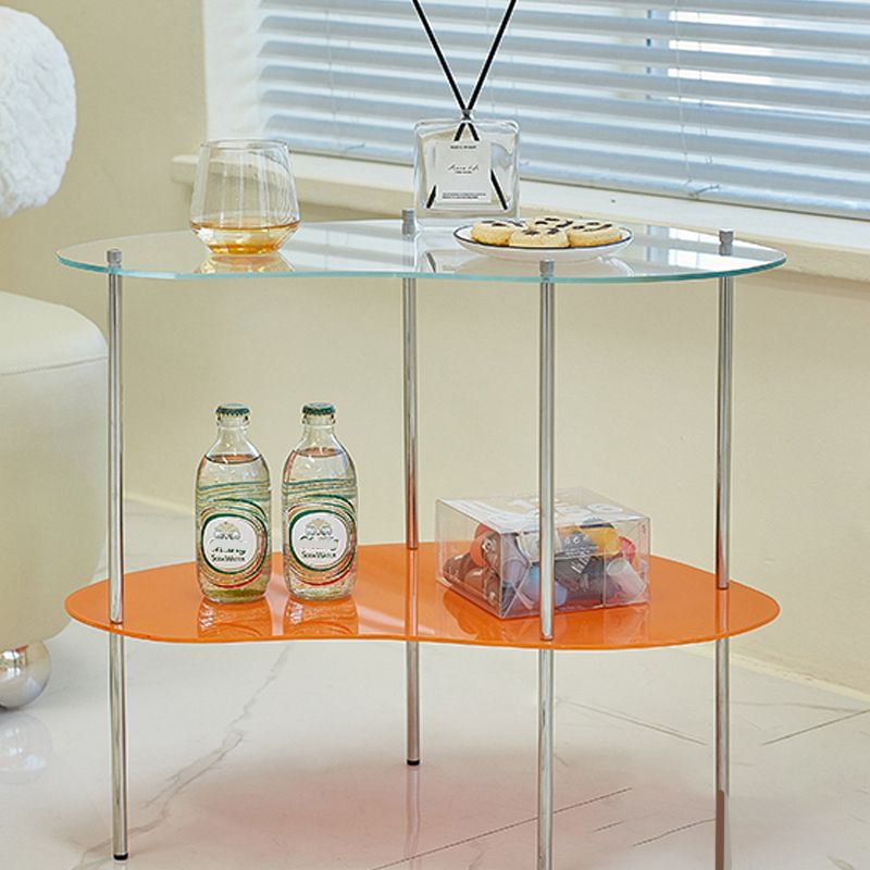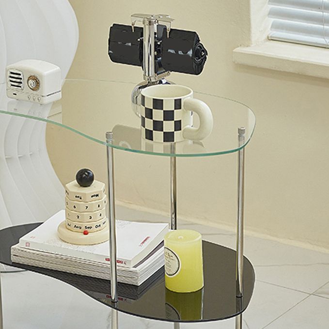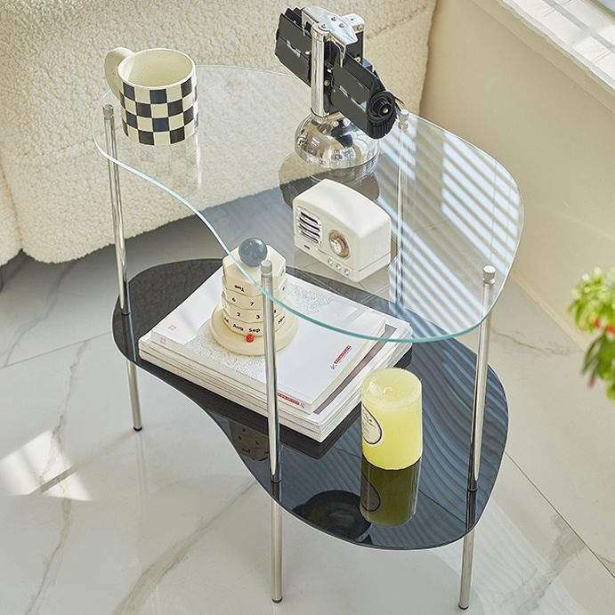 Modern Gambe in vetro 4 gambe a doppio livello tavolino accento a forma naturale