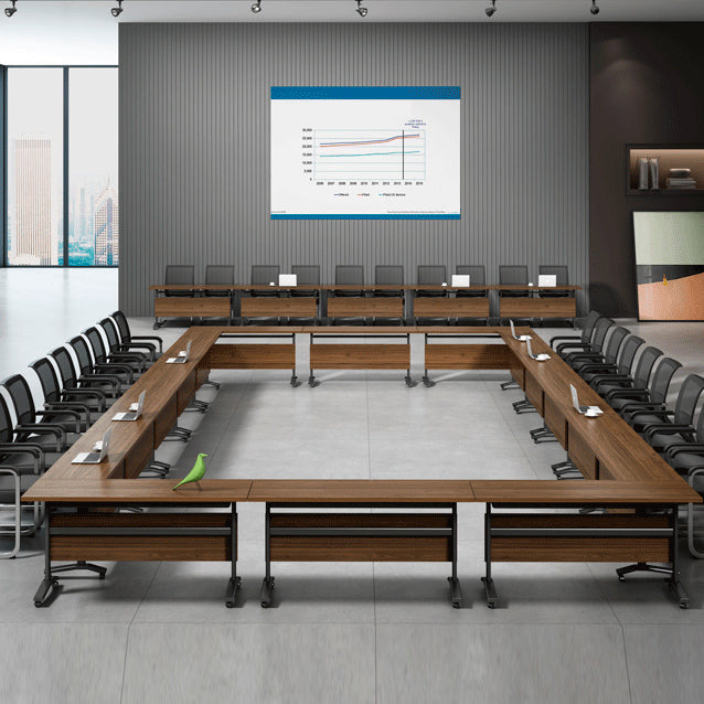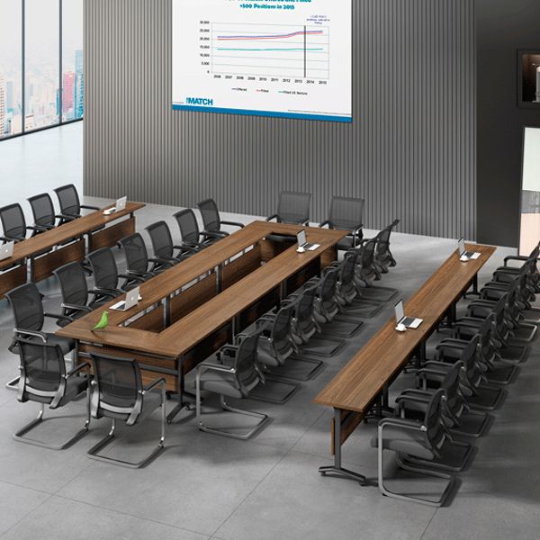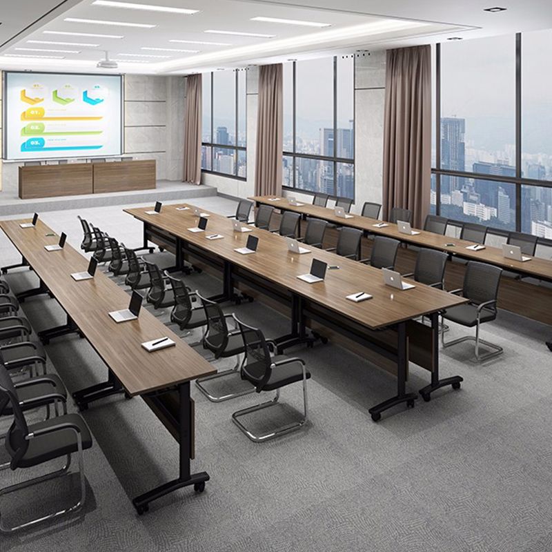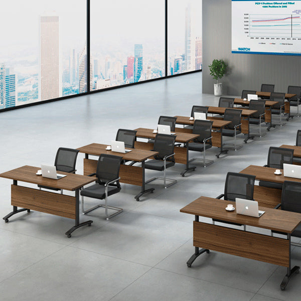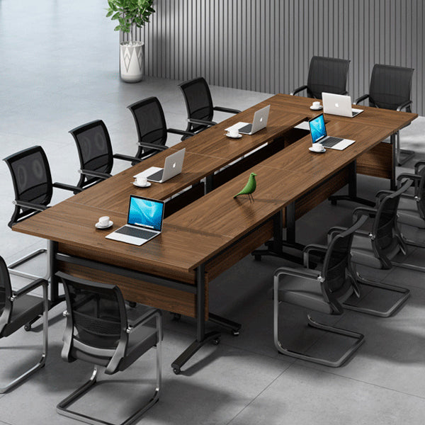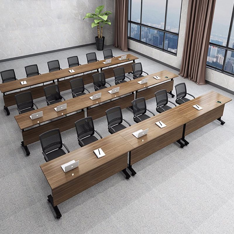 Moderna scrivania in legno fabbricato con ruote rettangolari marroni rettangolare