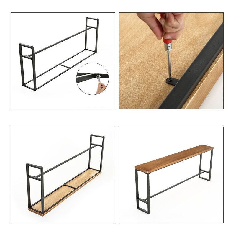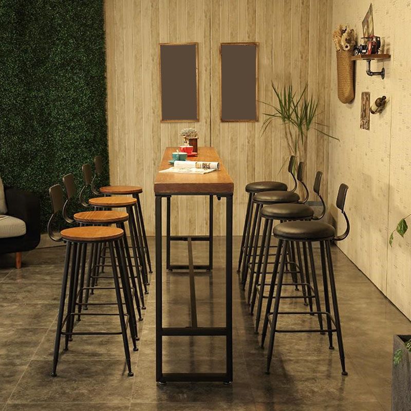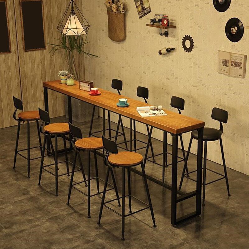 Tavolo da bar rettangolo superiore in legno di pino tavolo da bistrot industriale con base di cavalletto in nero