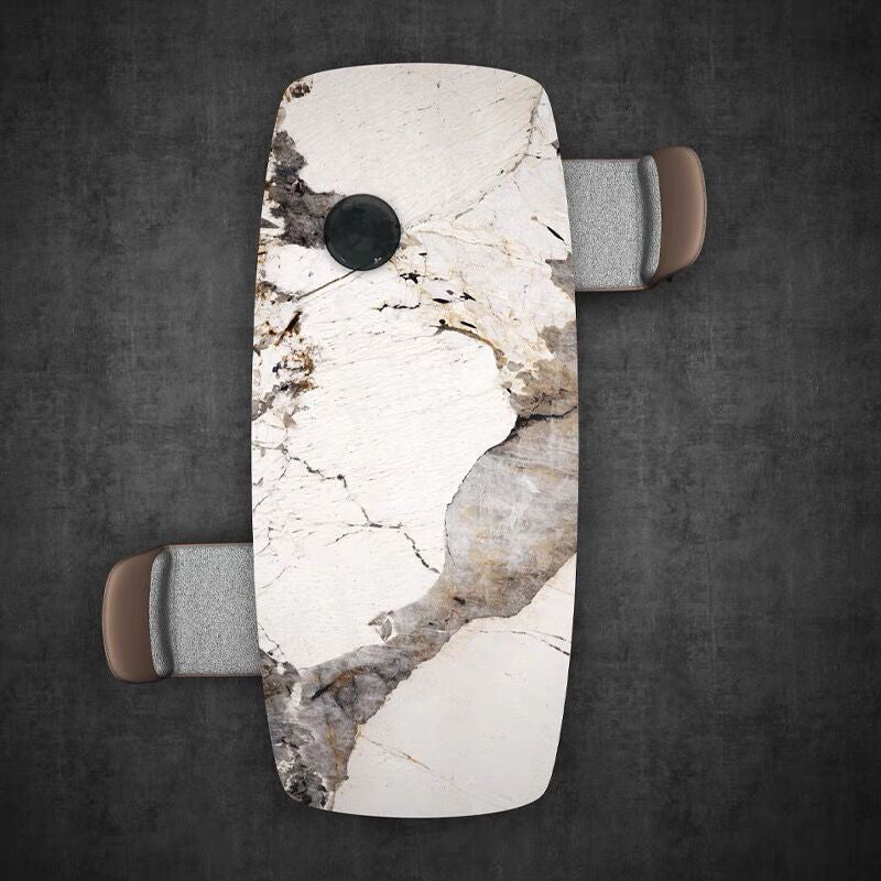 Tavolo da tavola in pietra sinterizzata da rettangolo moderno tavolo da base in metallo grigio