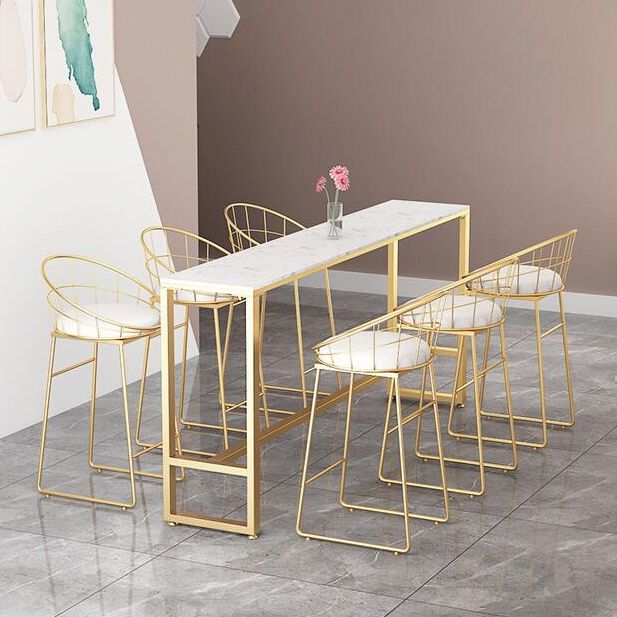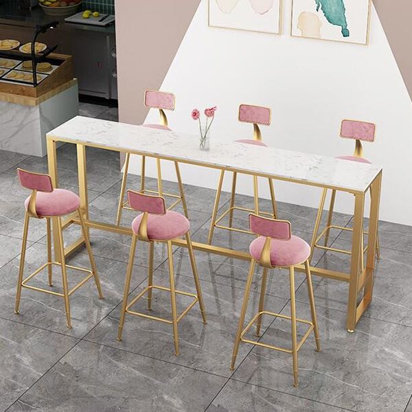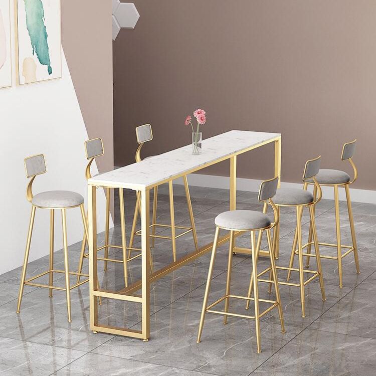 Tavolo da pranzo in pietra rettangolare tavolo da pranzo industriale con base di cavalletto dorato