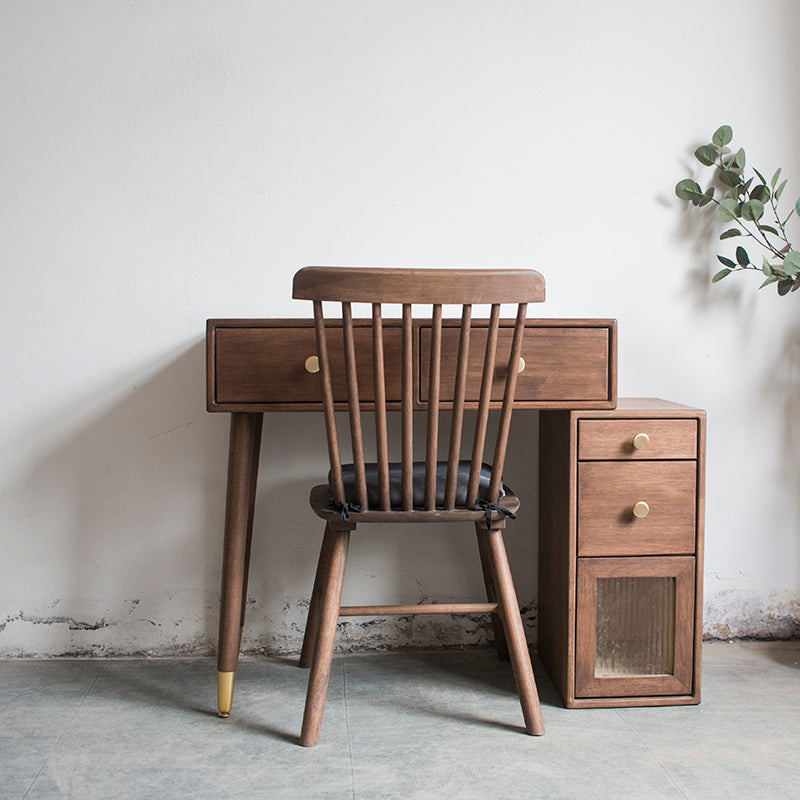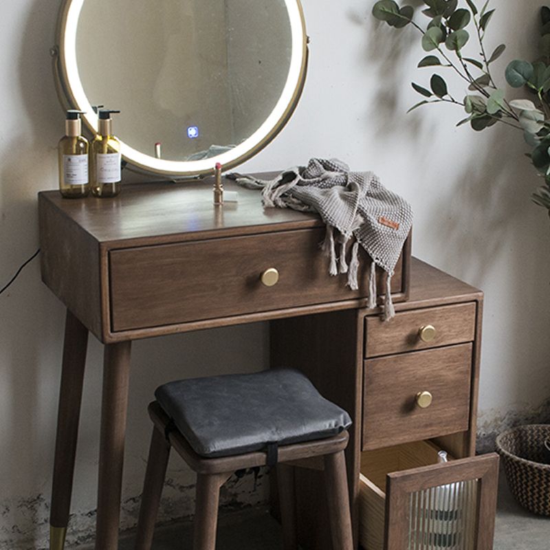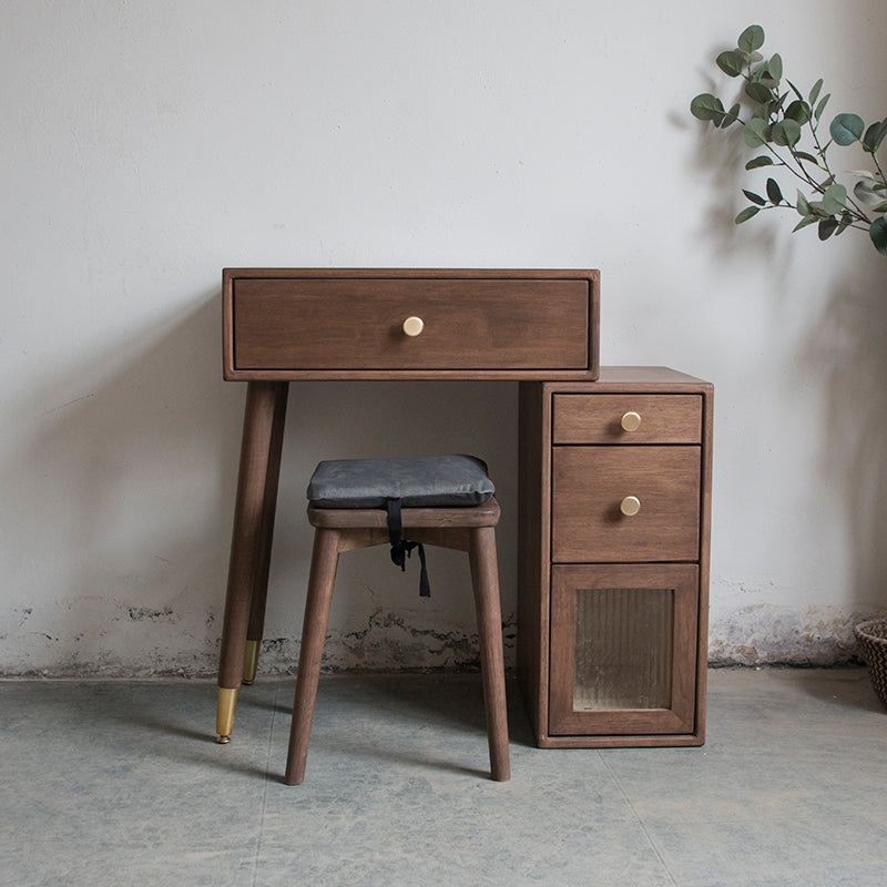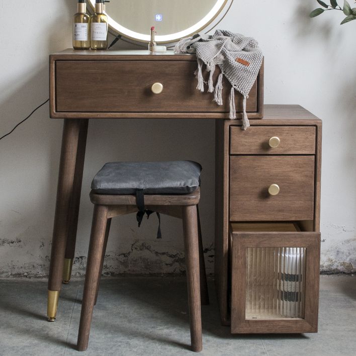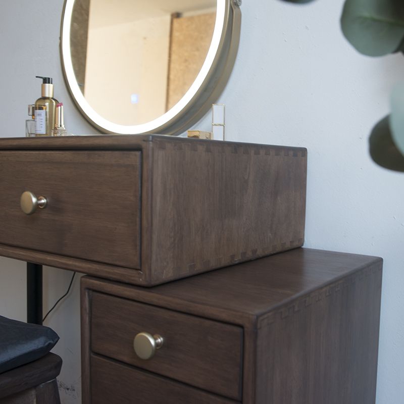 Set di vanità in gomma con cassetti nel tavolo da banco di vanità per trucco in noce