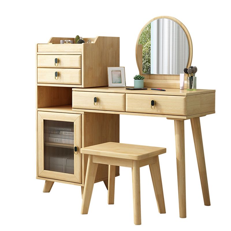 Set di vanità in gomma con sgabello e specchio scandinavo 4 cassetti