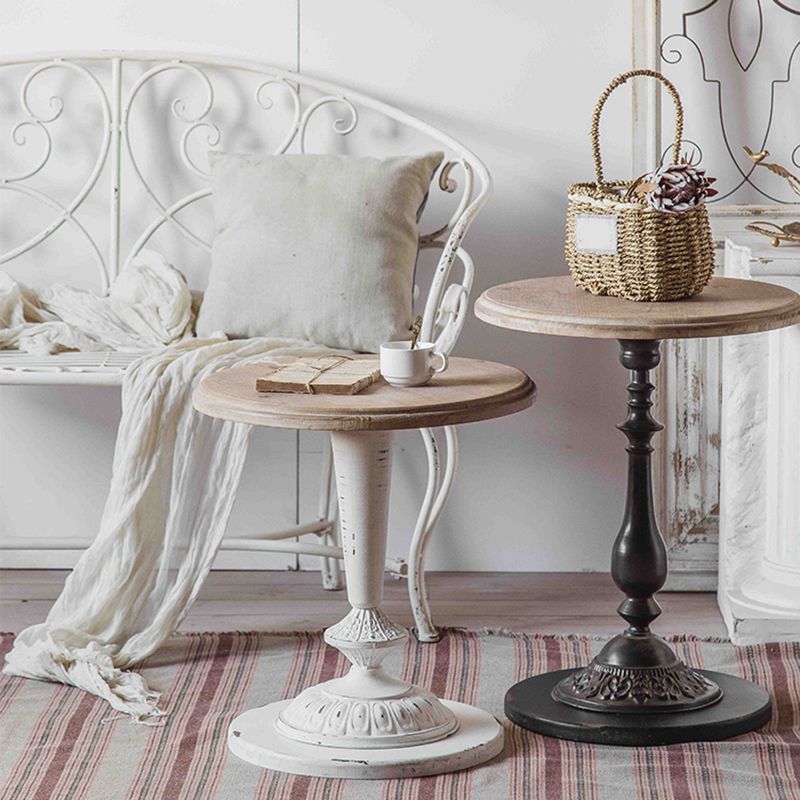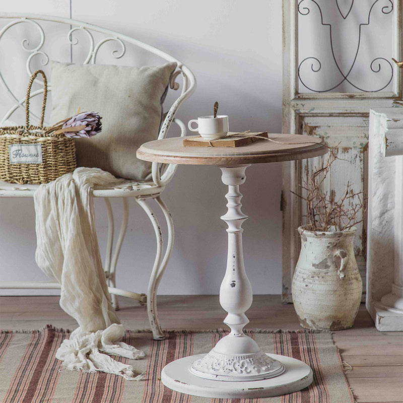 Tavolino accento di divano di divano in stile rustico in metallo e laterale in legno