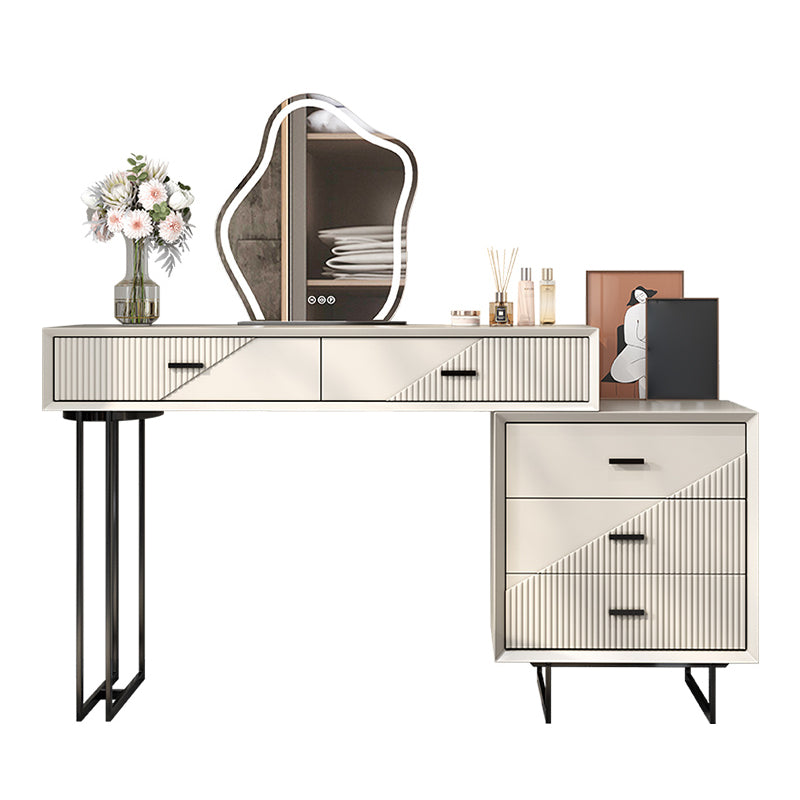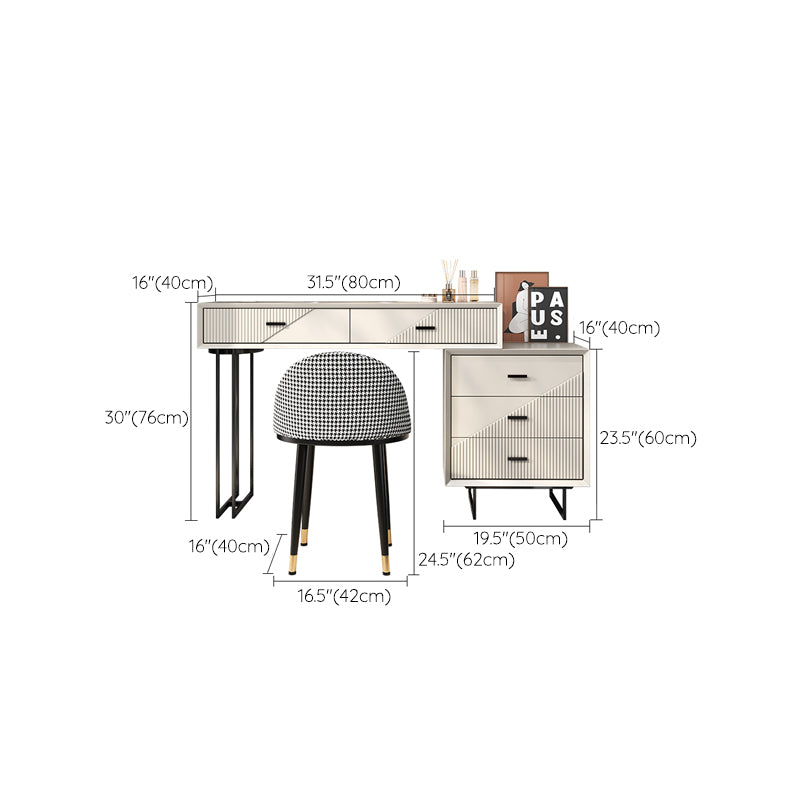 Scantina scandinava di vanità bianca in pietra a 5 cassetti da toeletta da toeletta