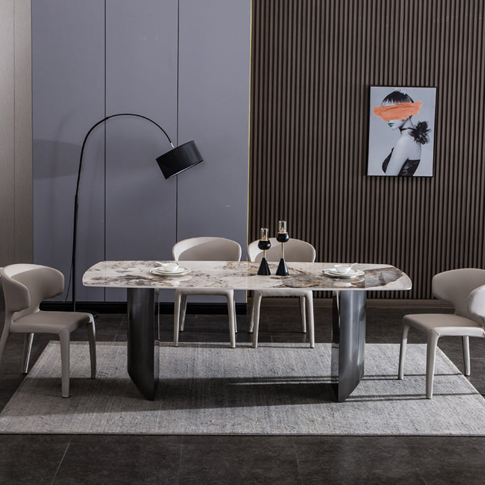Tavolo in pietra sinterizzato per il ristorante tavolo da pranzo industriale industriale con doppio piedistallo