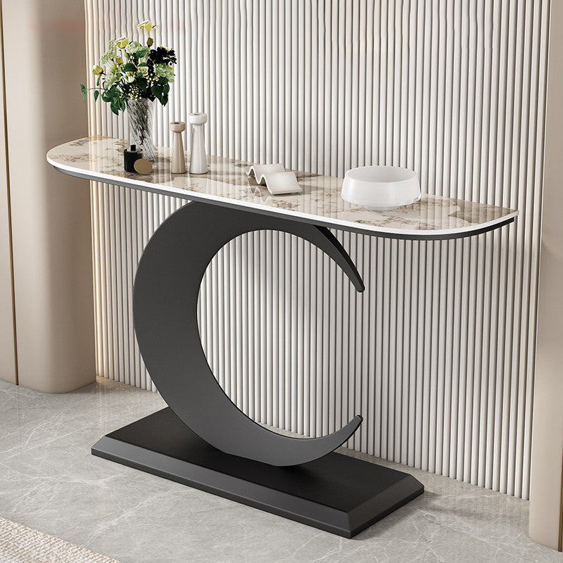 Console a mezza luna di pietra tavolo 1 scaffale 31,5 "tavolo di estremità alto con base astratta