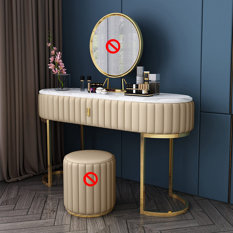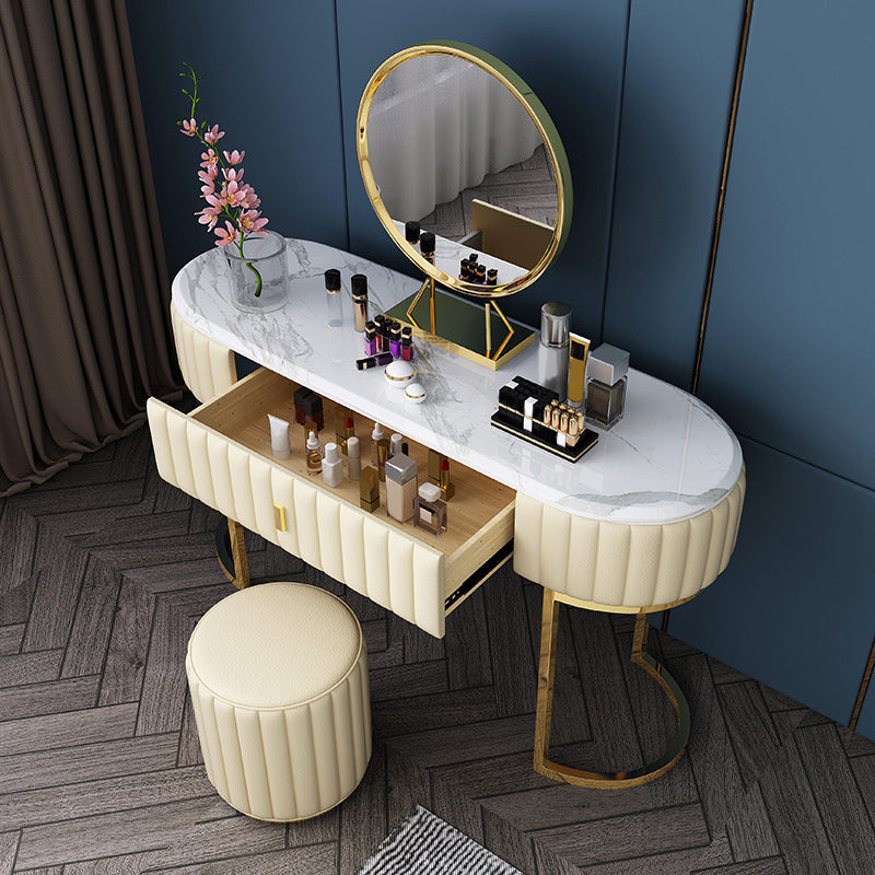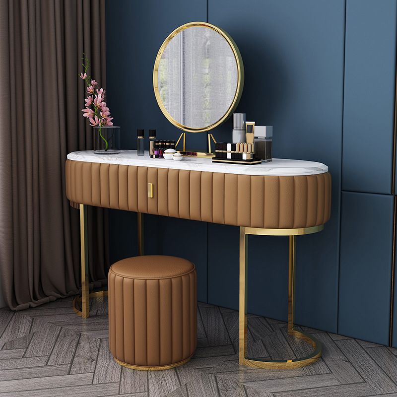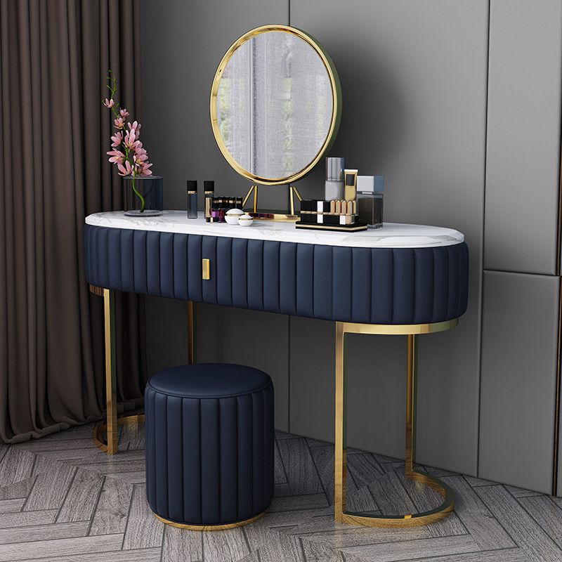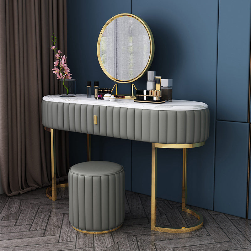 Tavolo da toeletta per vanità ovali top in pietra tavolo da trucco in metallo a specchio